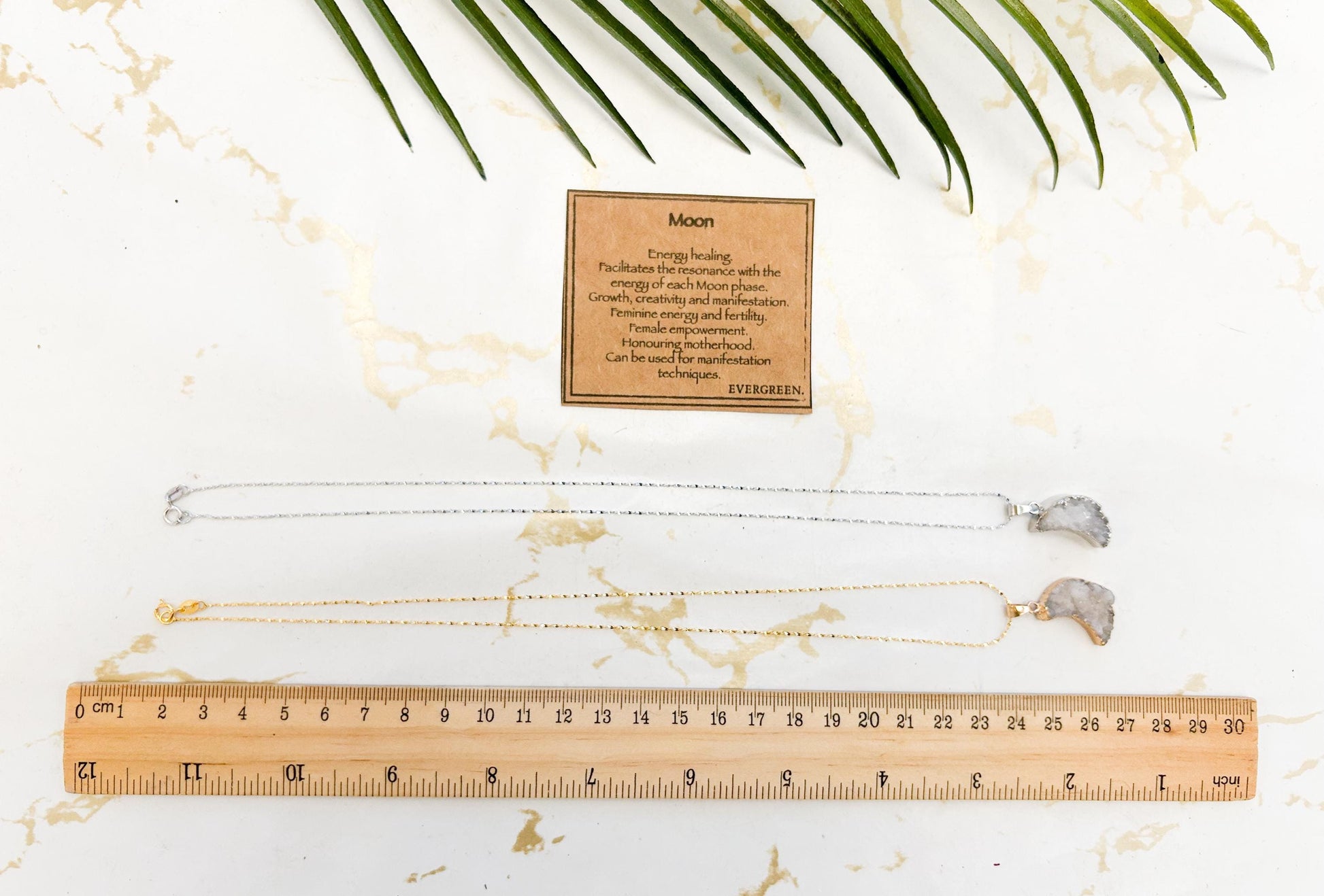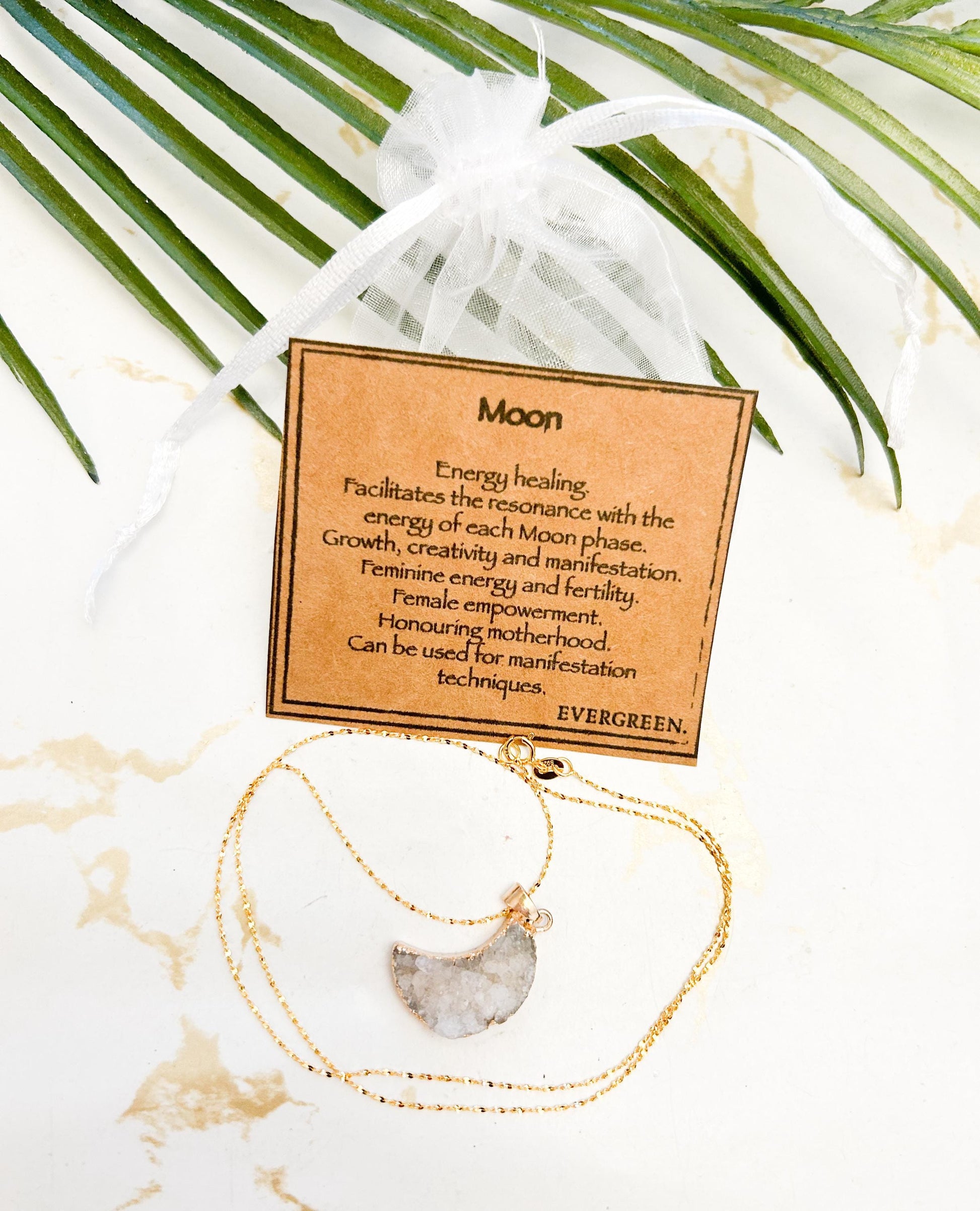 18 Karat Gold Plated 925 Sterling Silver Crystal Druzy Moon Pendant Necklace - Gold / Silver