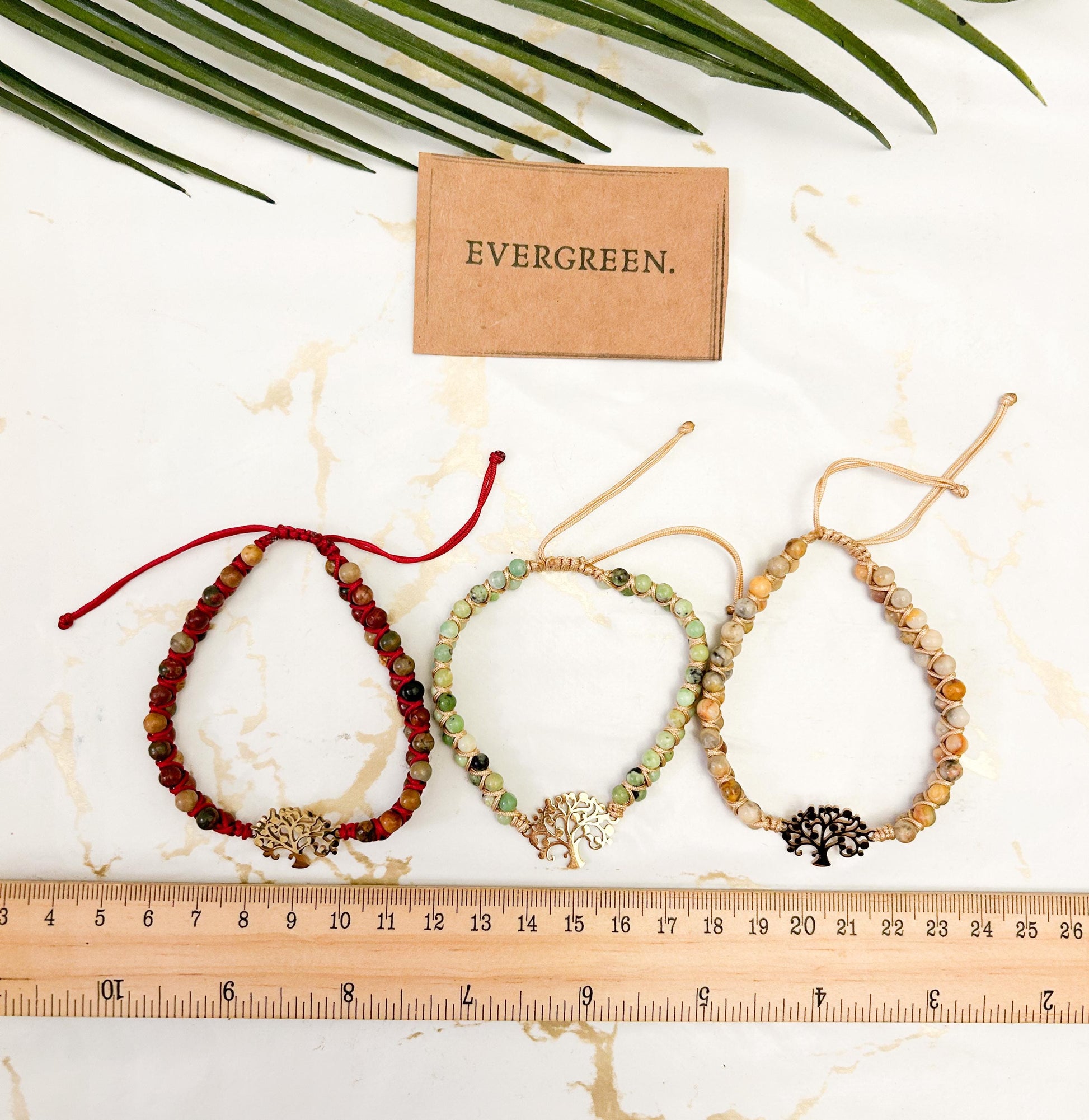 18 Karat Gold Plated Stainless Steel Tree Of Life Boho Crystal Beaded Bracelet - Jade / Picasso Jasper / Crazy Agate