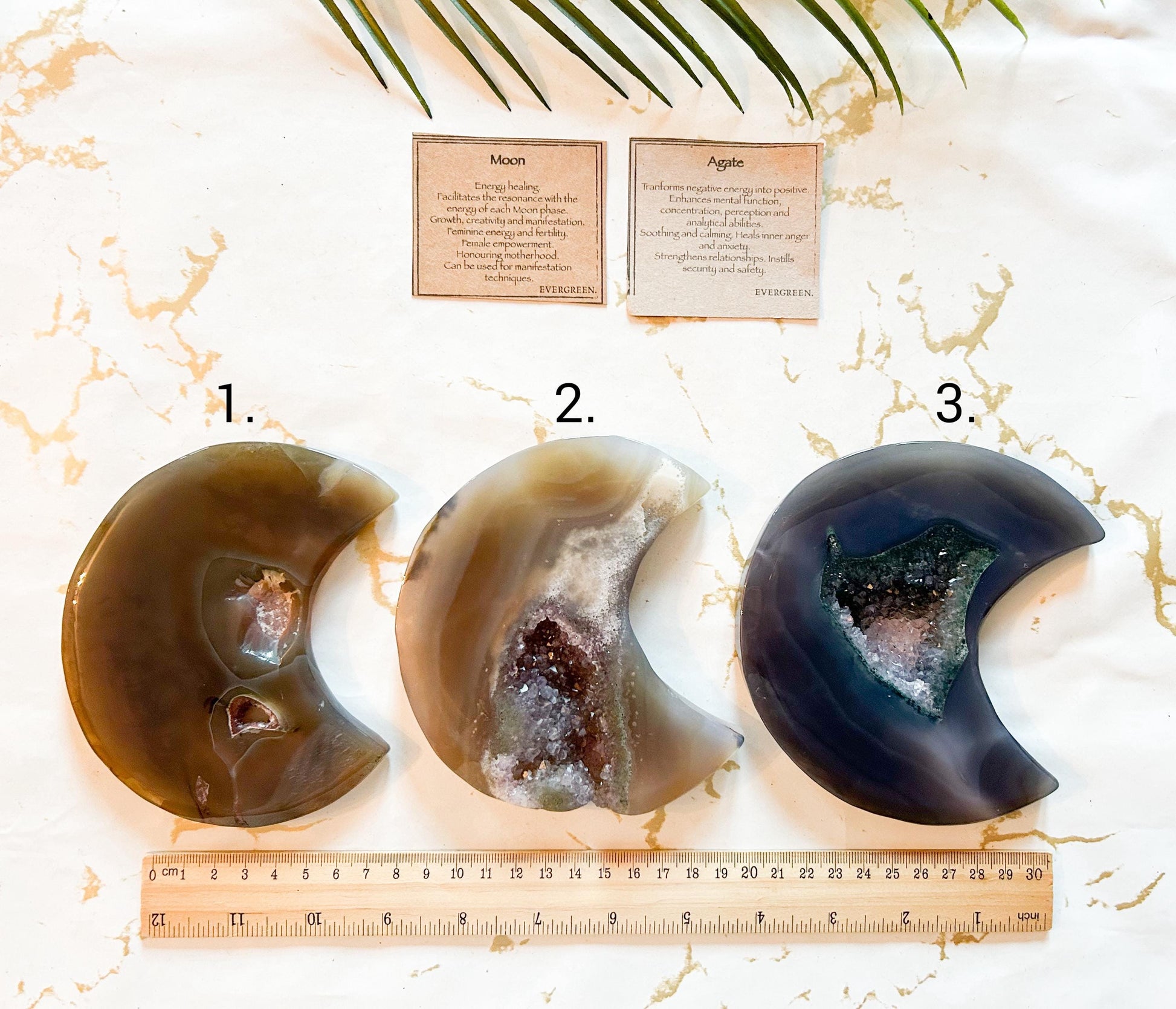 Agate Crystal Druzy Moon Carving - Healing, Growth & Transformation