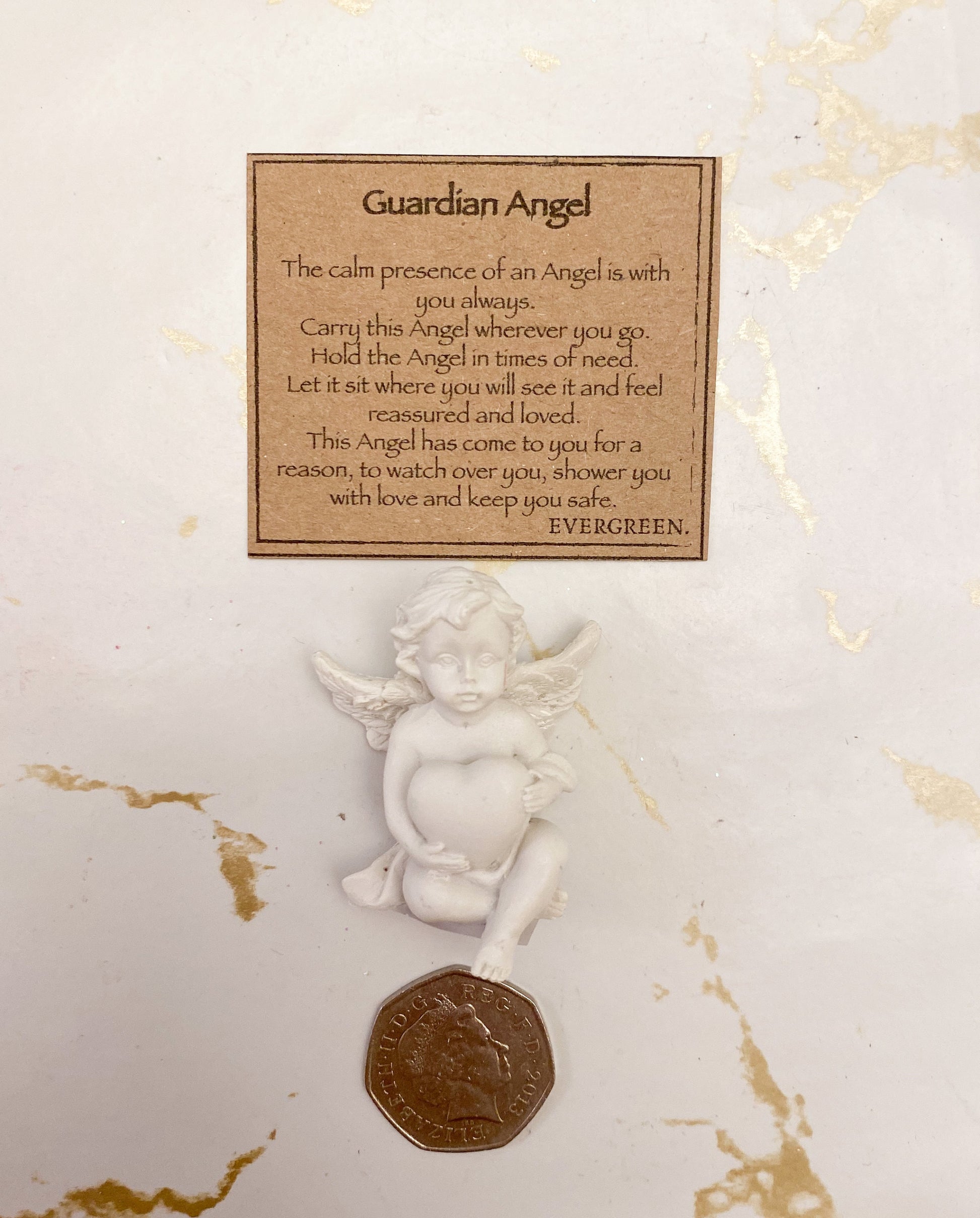 The calm presence of an Angel is with you always. Carry this Angel wherever you go. Hold the Angel in times of need. Let it sit where you will see it and feel