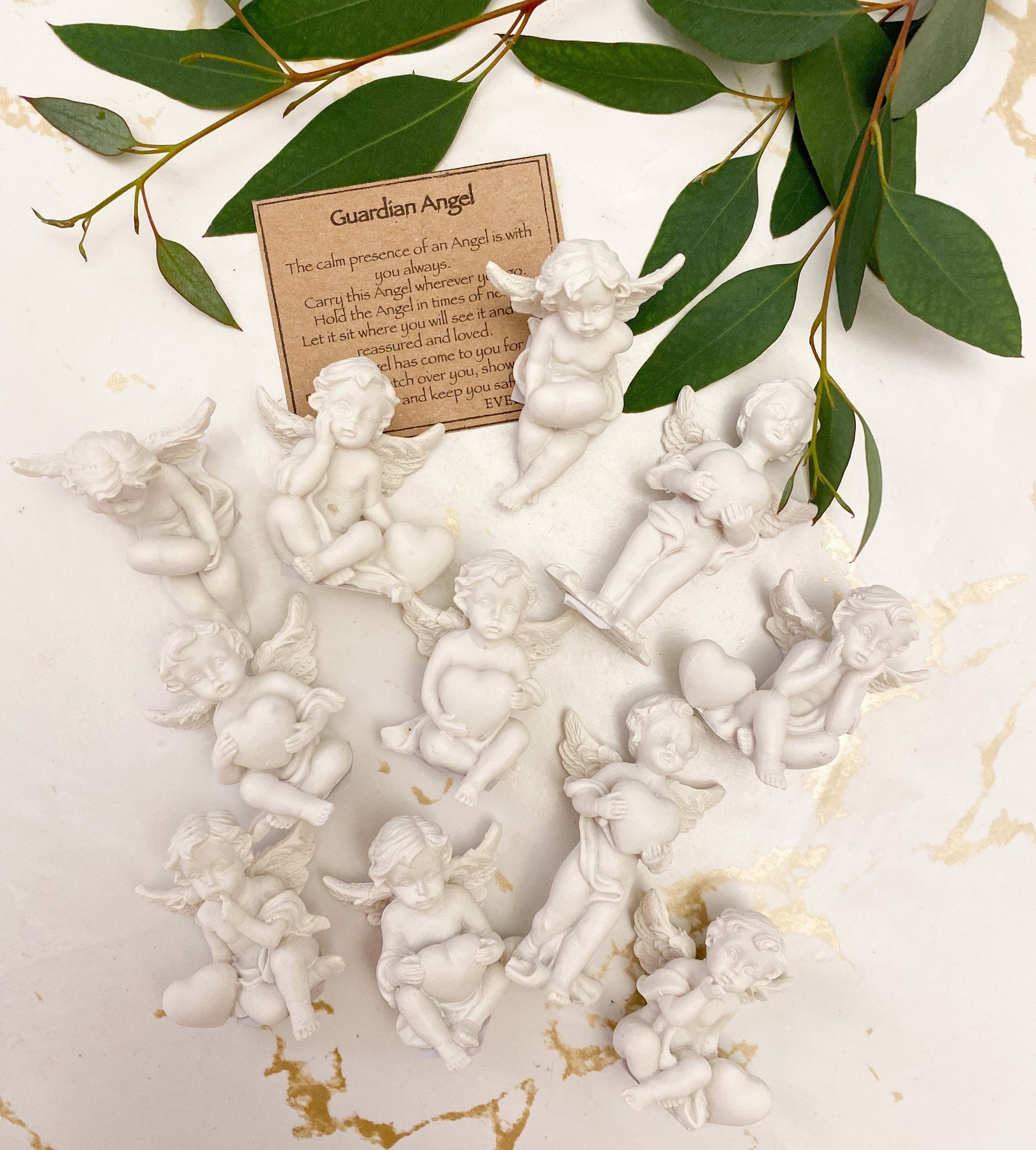 These beautiful cherubs are approximately H 4.5 - 6.5cm, W 4 - 5cm, D 3 - 7cm and bring peace, love and light to your day.