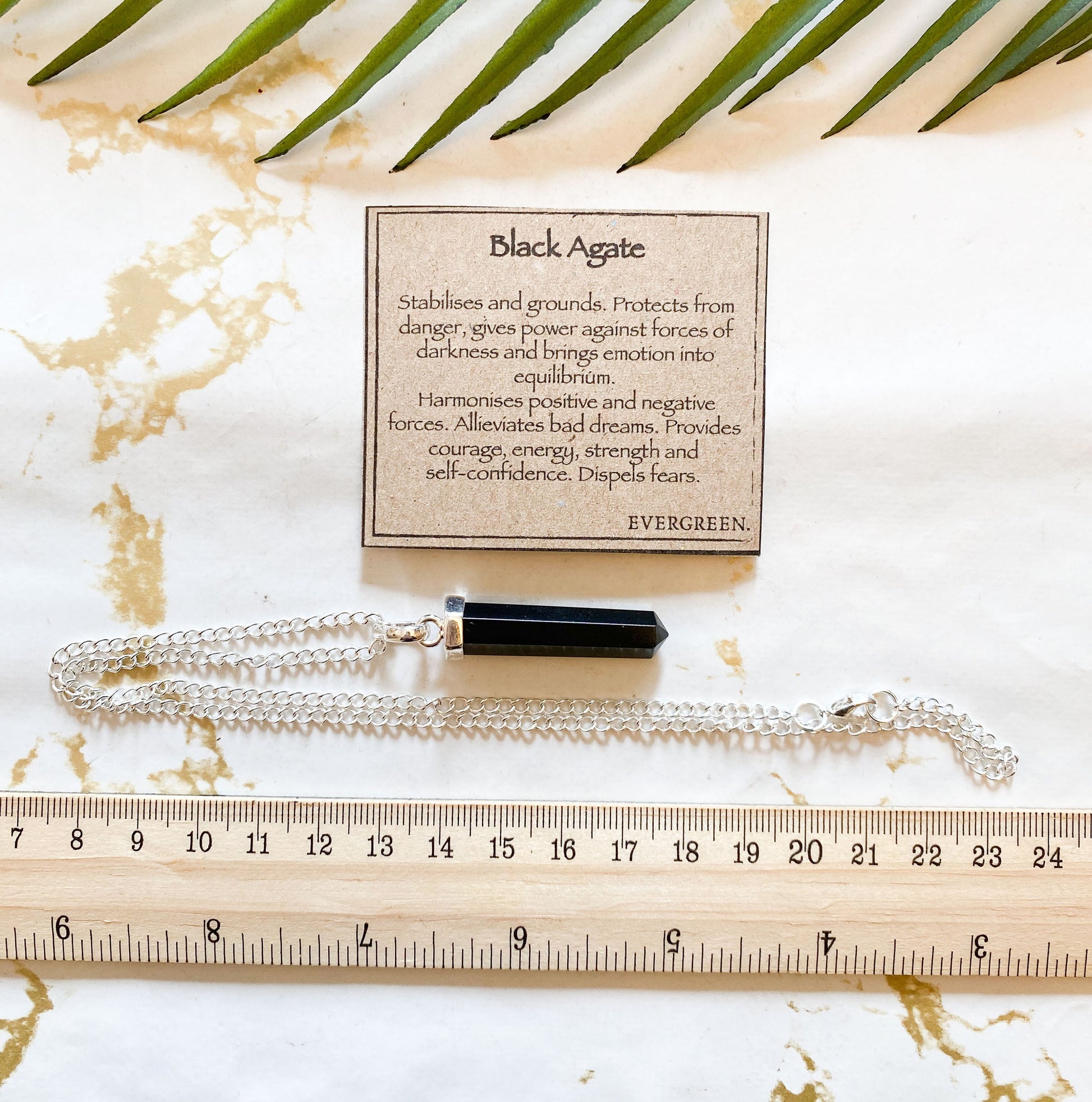 Black Agate Crystal Pendant And Chain - Stability, Protection & Strength