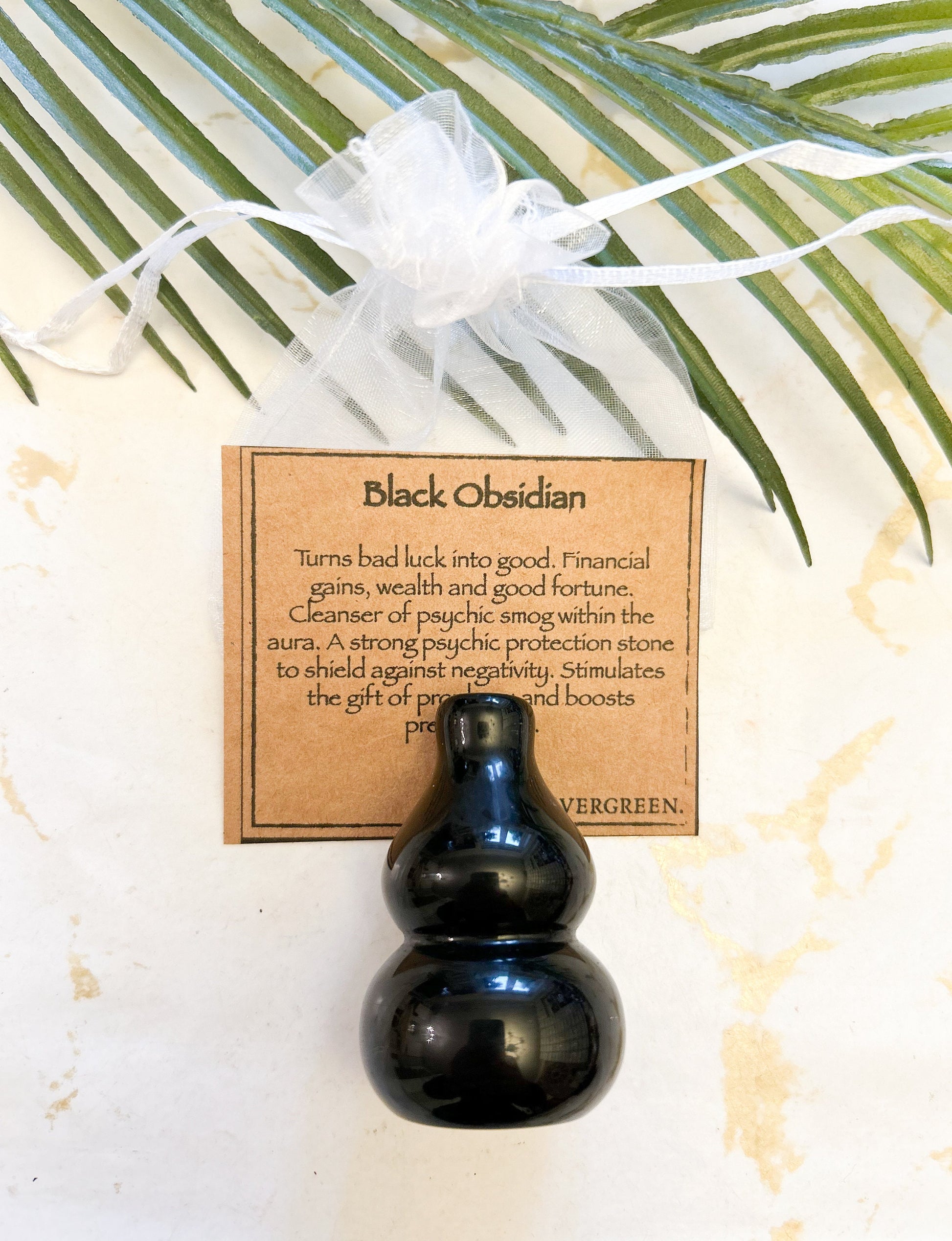 Black Obsidian Crystal Gourd - Protection, Wealth & Good Fortune