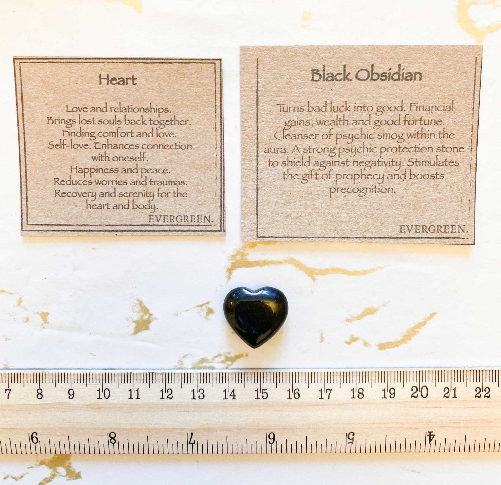 Black Obsidian Crystal Heart 20mm - Good Luck, Wealth & Good Fortune