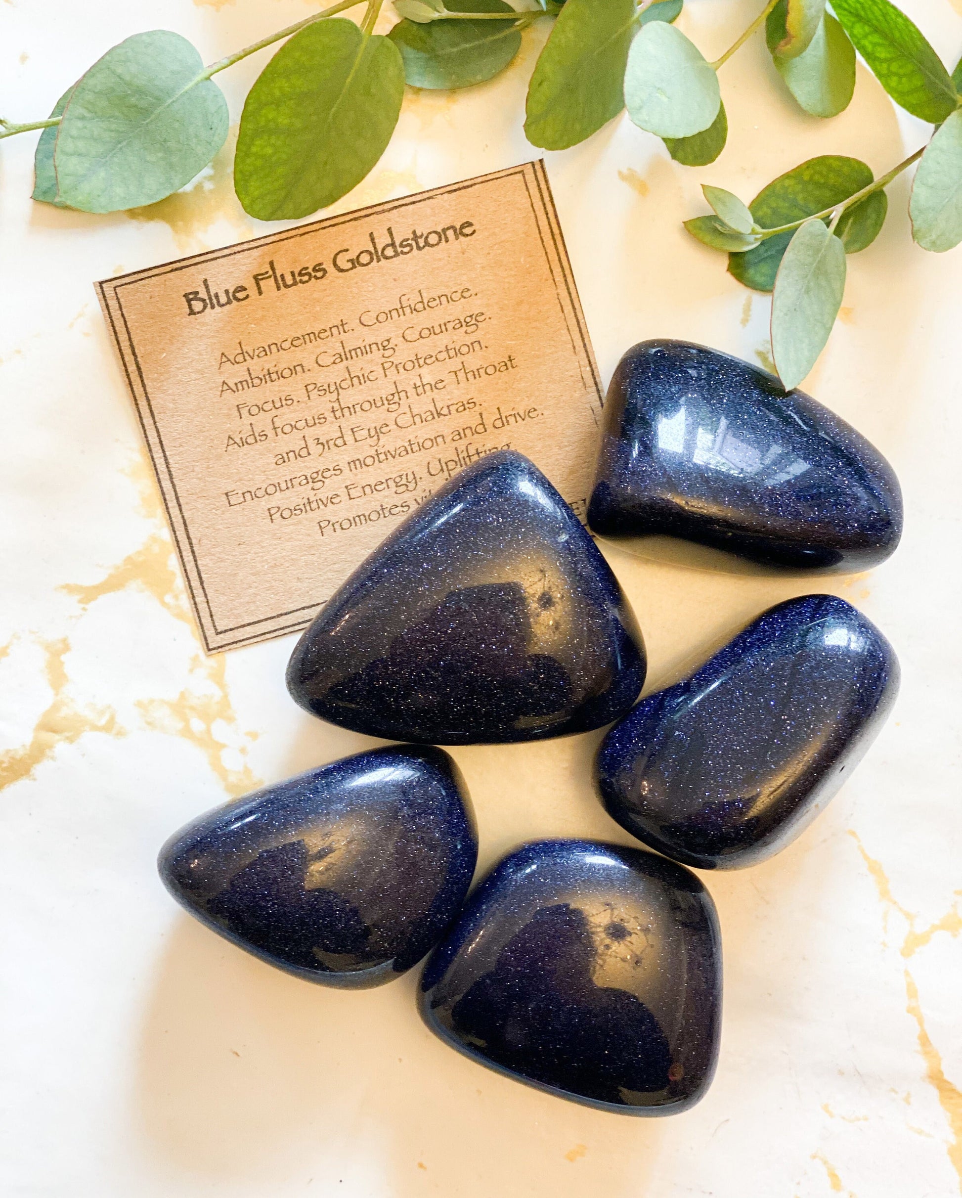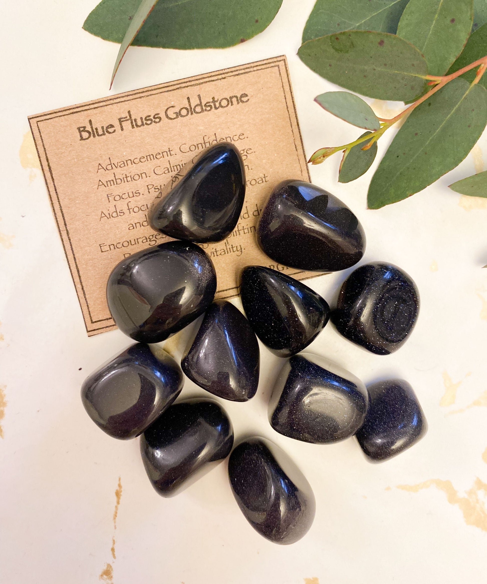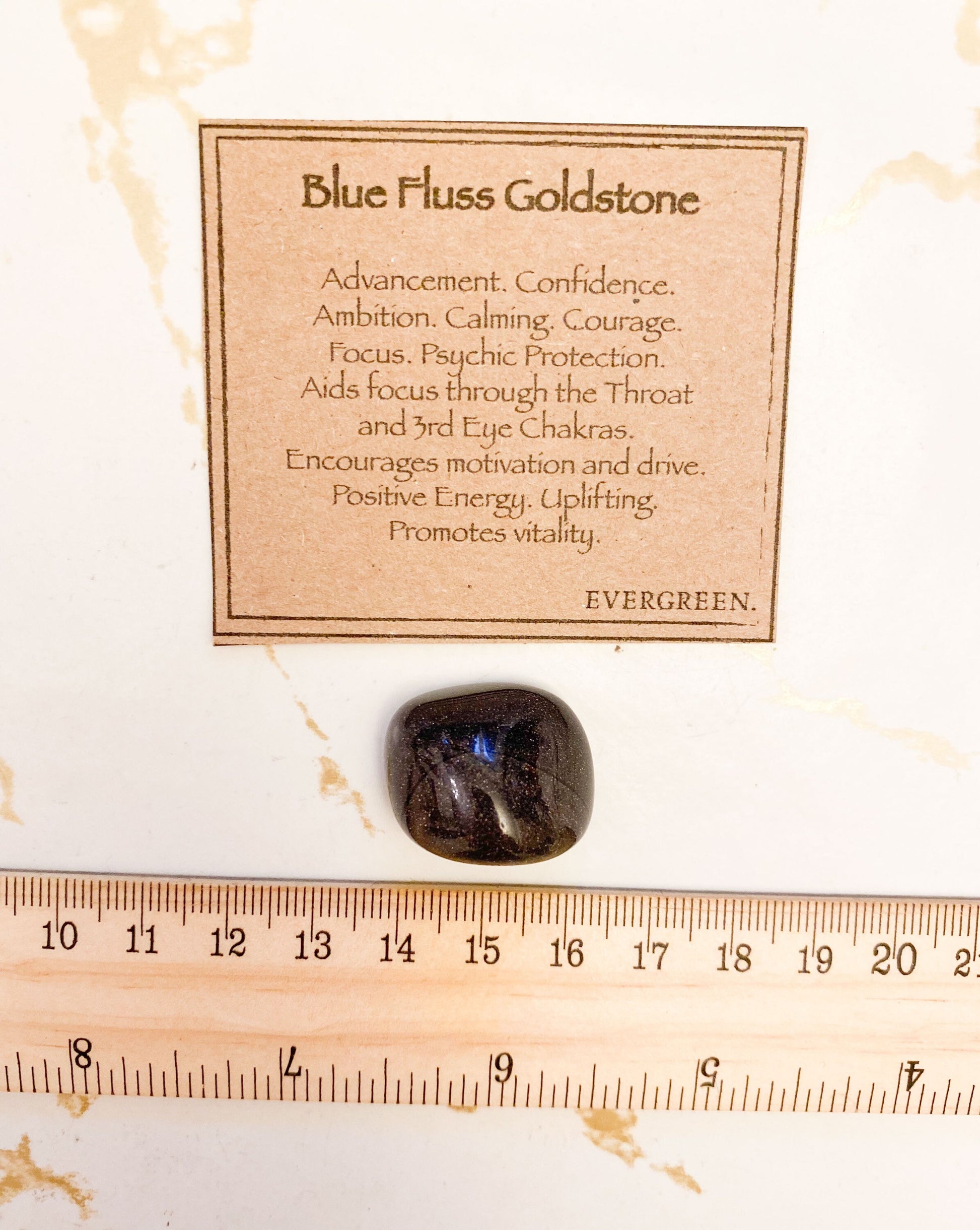 Blue Fluss Goldstone Crystal Tumbled Stone - Advancement, Courage & Focus