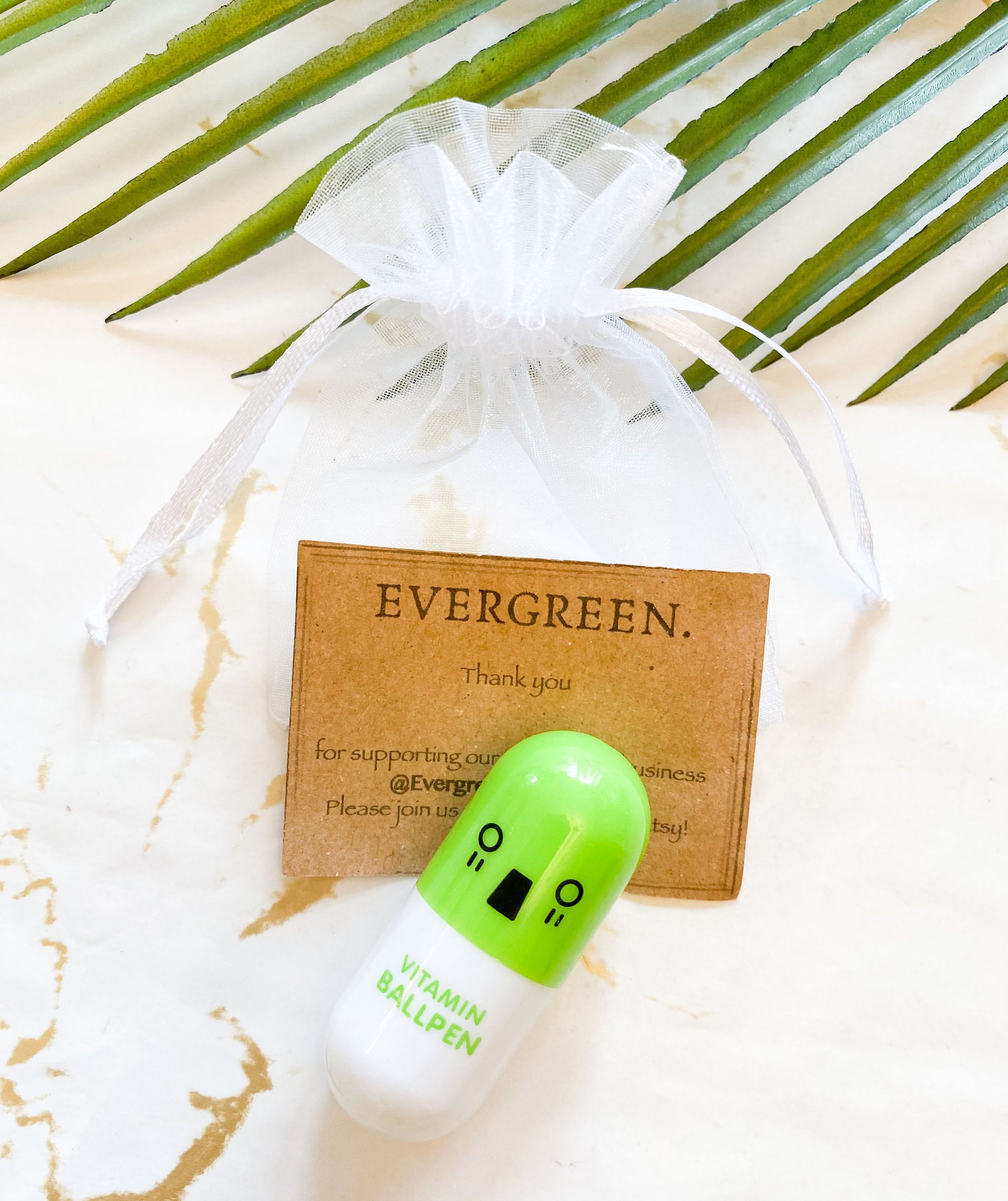 Pop up a ballpen from this cute little vitamin for a writing tool on the go! Perfect for a Childs pencil case or travel bag.