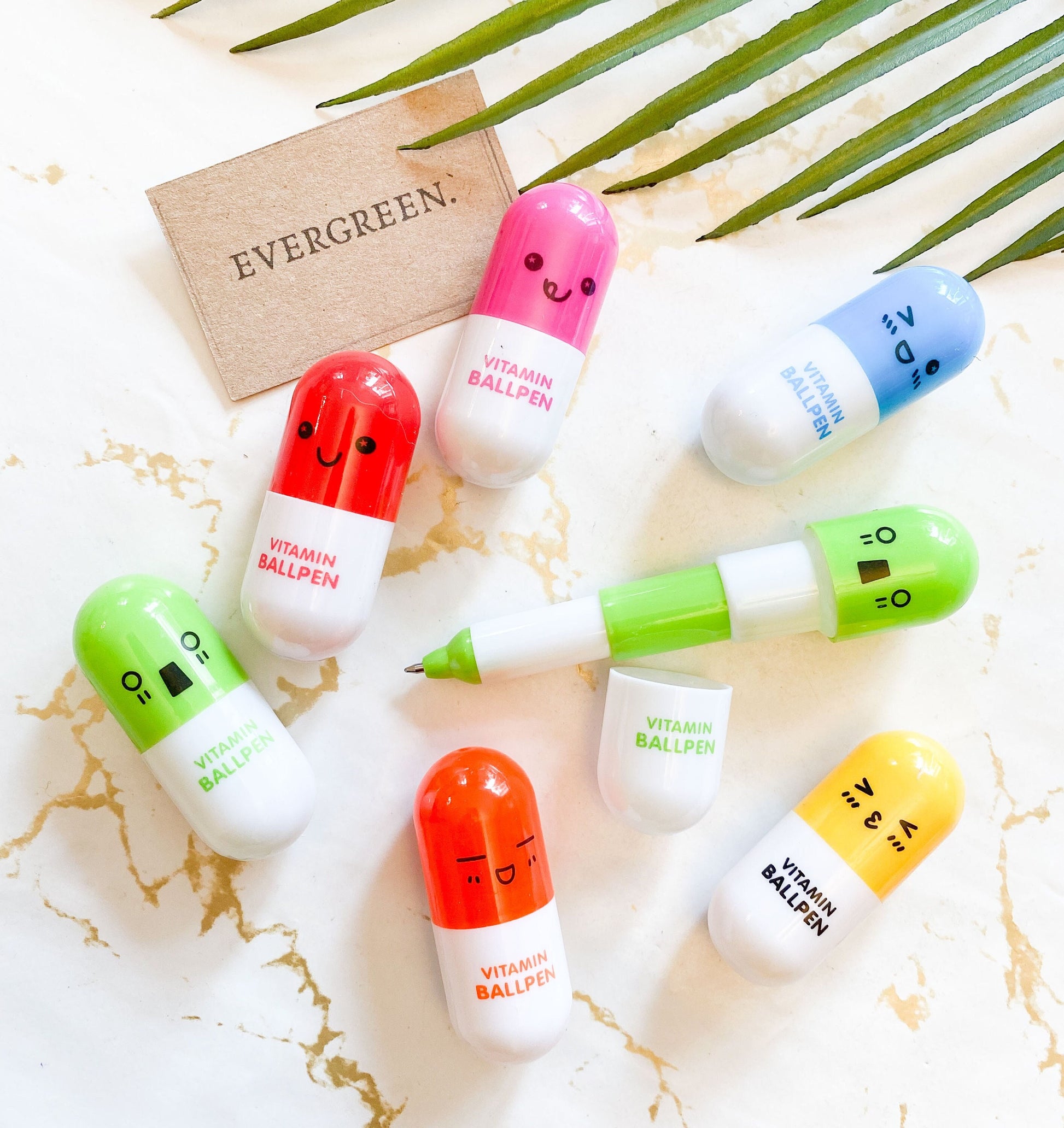 Cartoon Vitamin Retractable Ballpoint Pen - Fun / Children / Travel