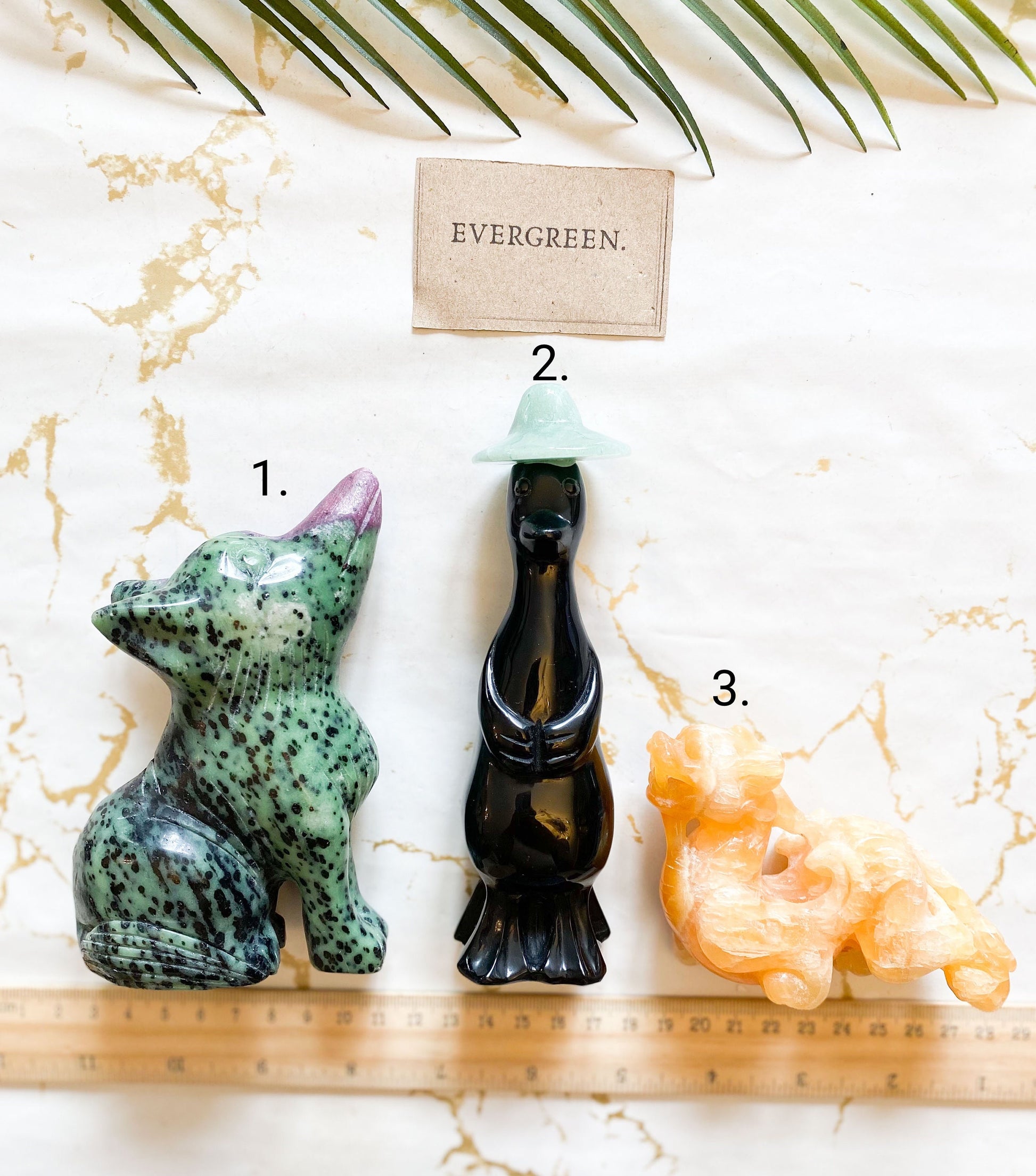 Crystal Animal Carvings - Duck, Wolf, Dragon