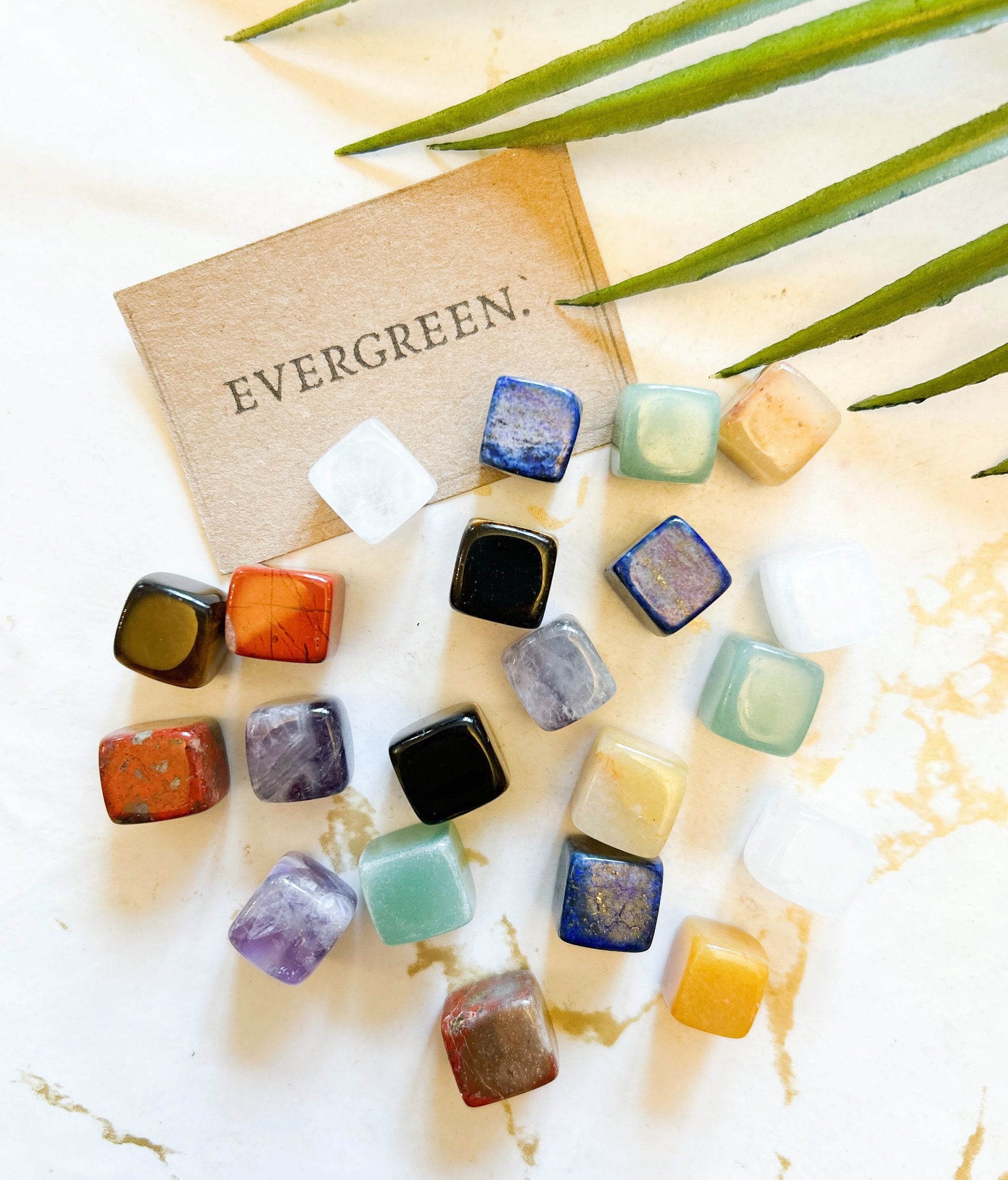 Crystal Chakra Meditation Cubes 10mm - Redstone, Tiger Eye, Yellow Aventurine, Green Aventurine, Lapis Lazuli, Amethyst, Quartz