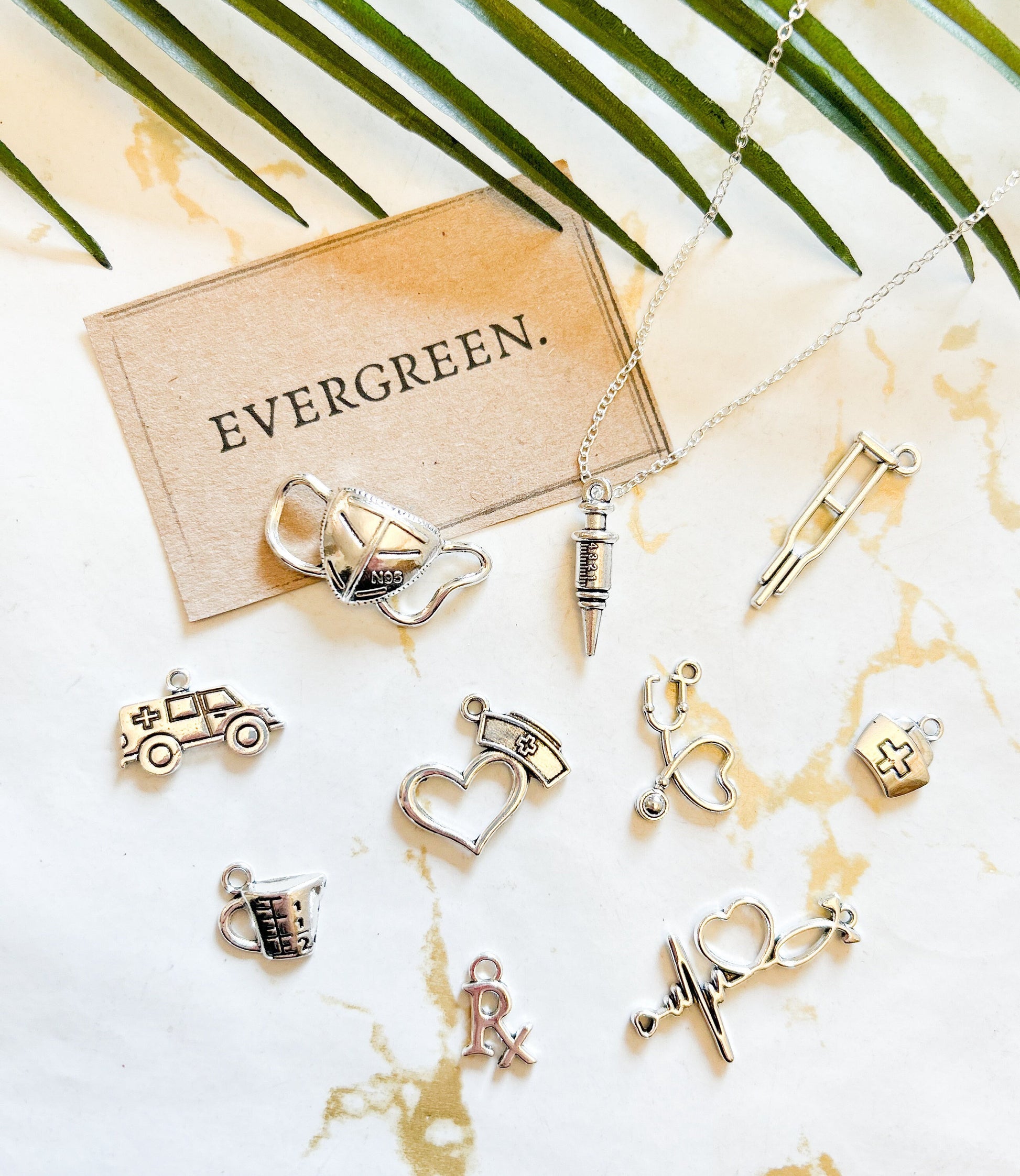 Doctor / Nurse / Ambulance / Hospital / Healthcare / Midwife / Student Pendant / C harm - Syringe, Heart, Heartbeat, Stethoscope, Jug, Mask