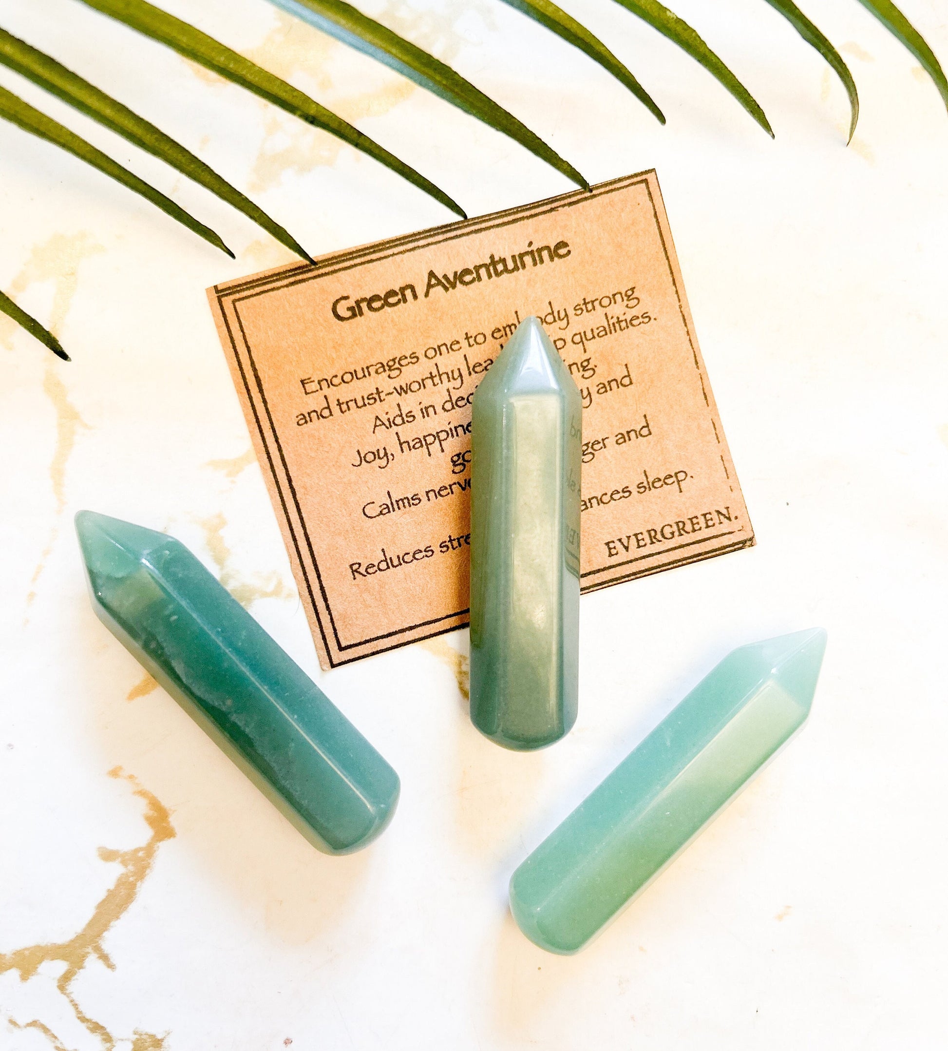 Green Aventurine Crystal Pointed Wand 60mm - Joy, Harmony & Good Luck