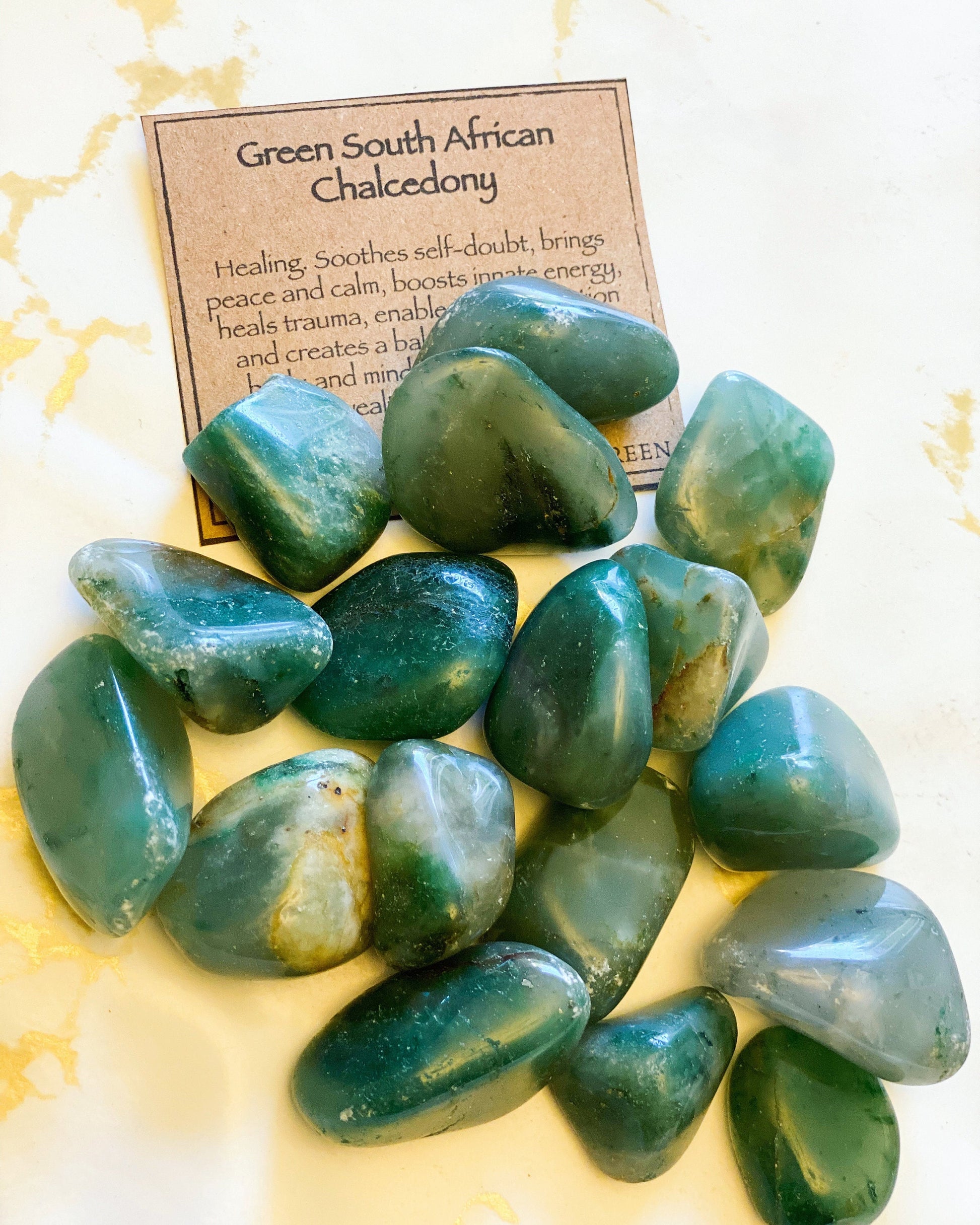 Green Chalcedony South African Crystal Tumbled Stone - Healing, Peace, Wealth