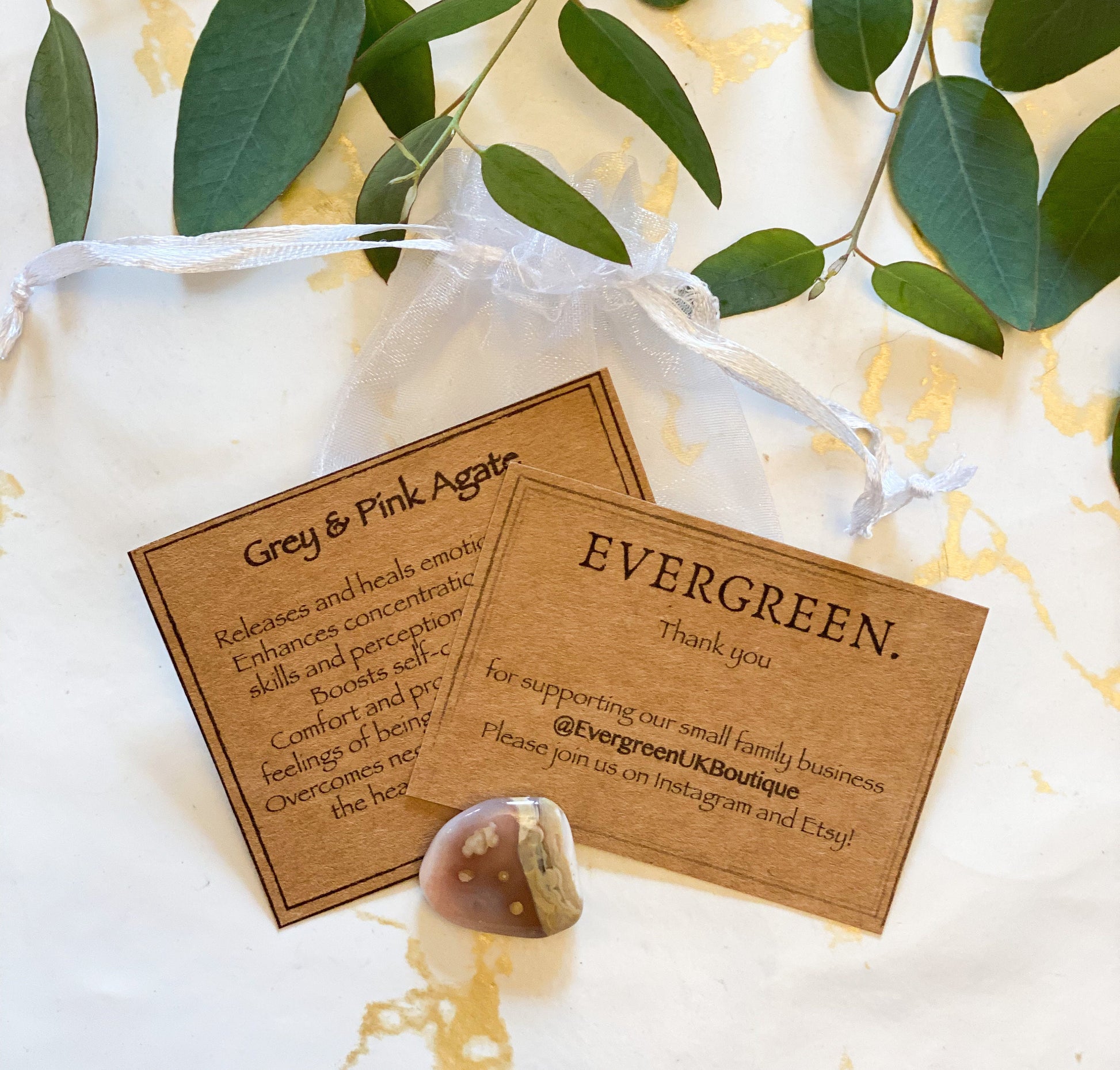 Grey And Pink Crystal Agate Tumbled Stone - Healing, Comfort & Protection