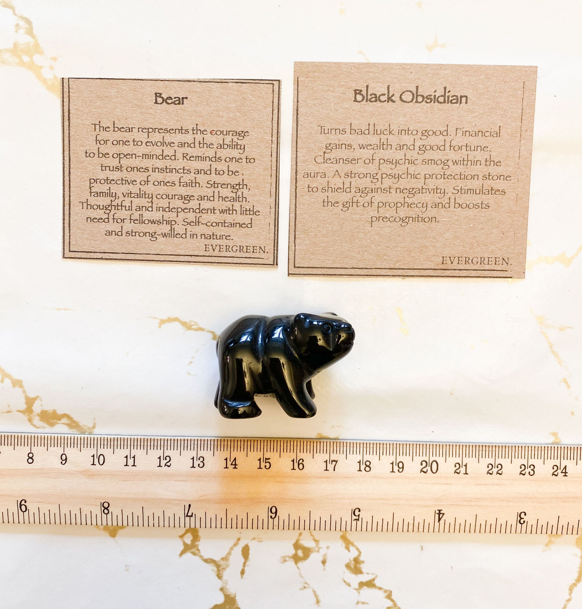 Hand Carved Black Obsidian Crystal Bear - Strength, Courage & Good Fortune