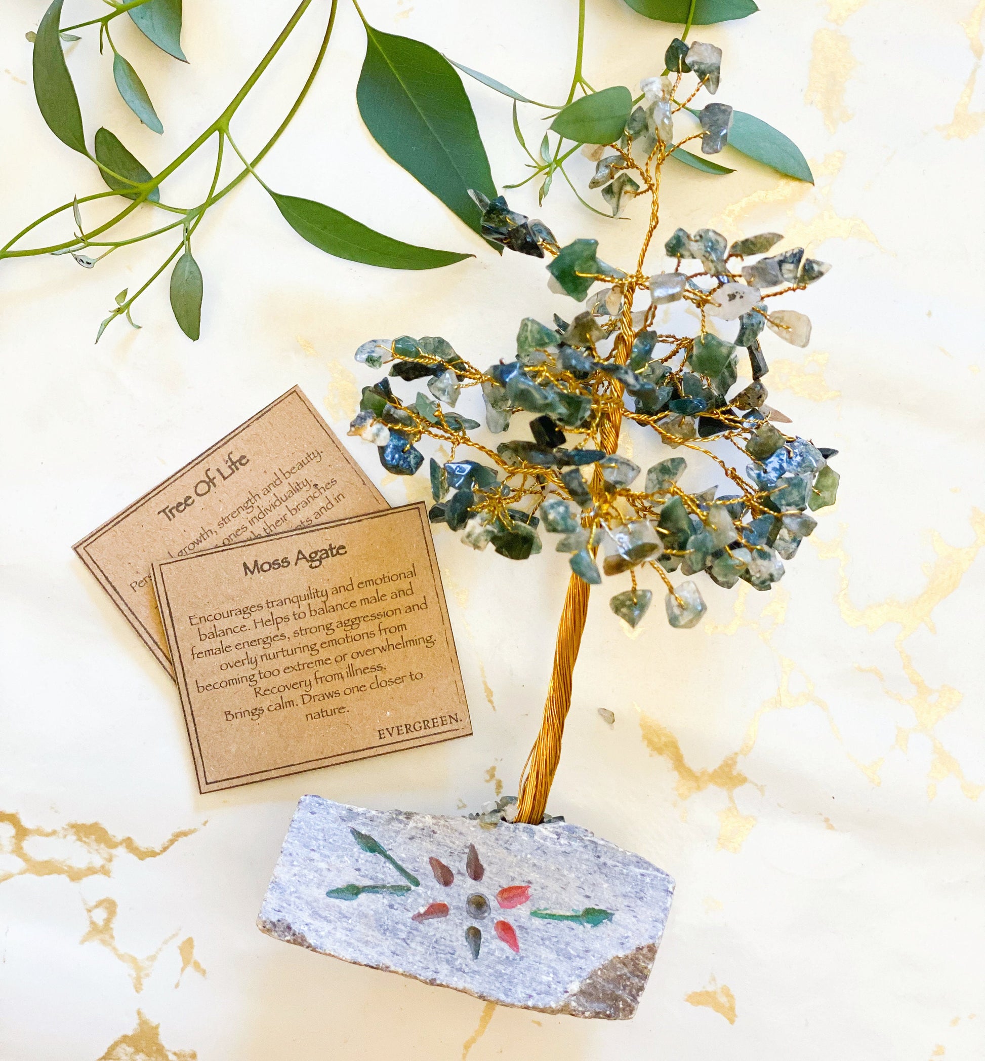 -160 Gemstone Moss Agate Crystal Tree