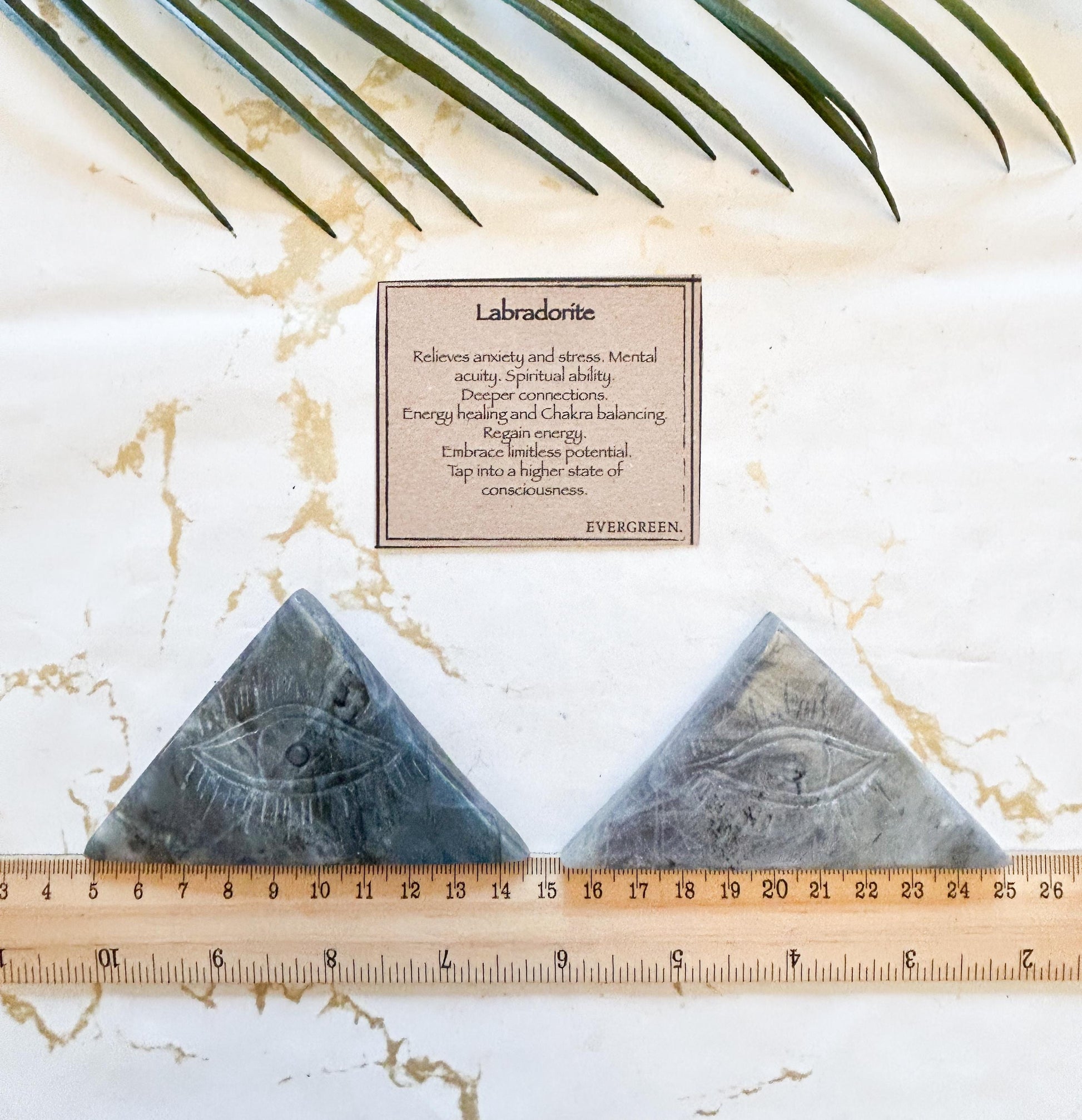 Labradorite Evil Eye Crystal Triangle Carving - Protection, Relieves Anxiety & Stress
