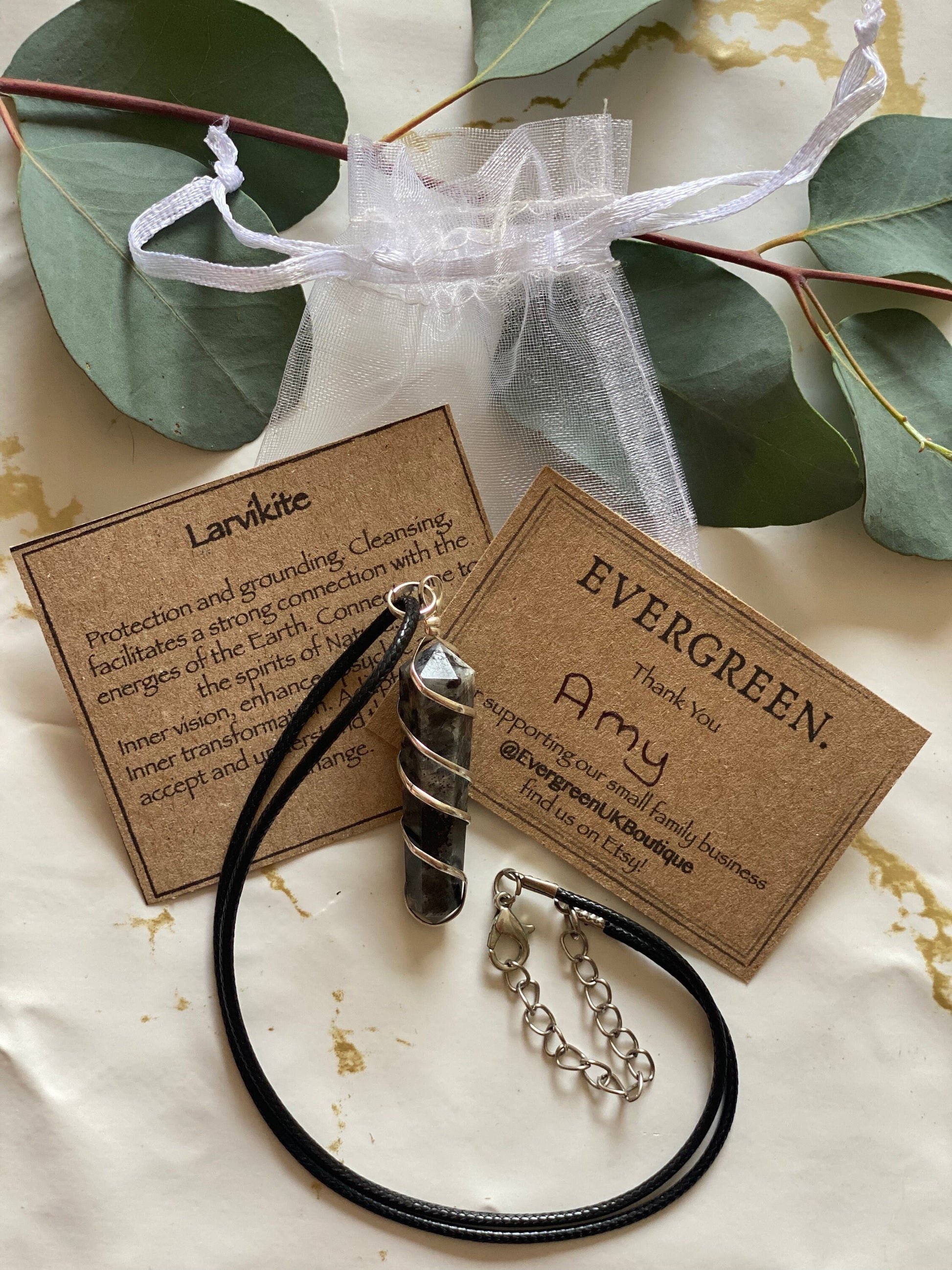 Larvikite Crystal Spiral Pendant - Cleansing, Grounding & Protection