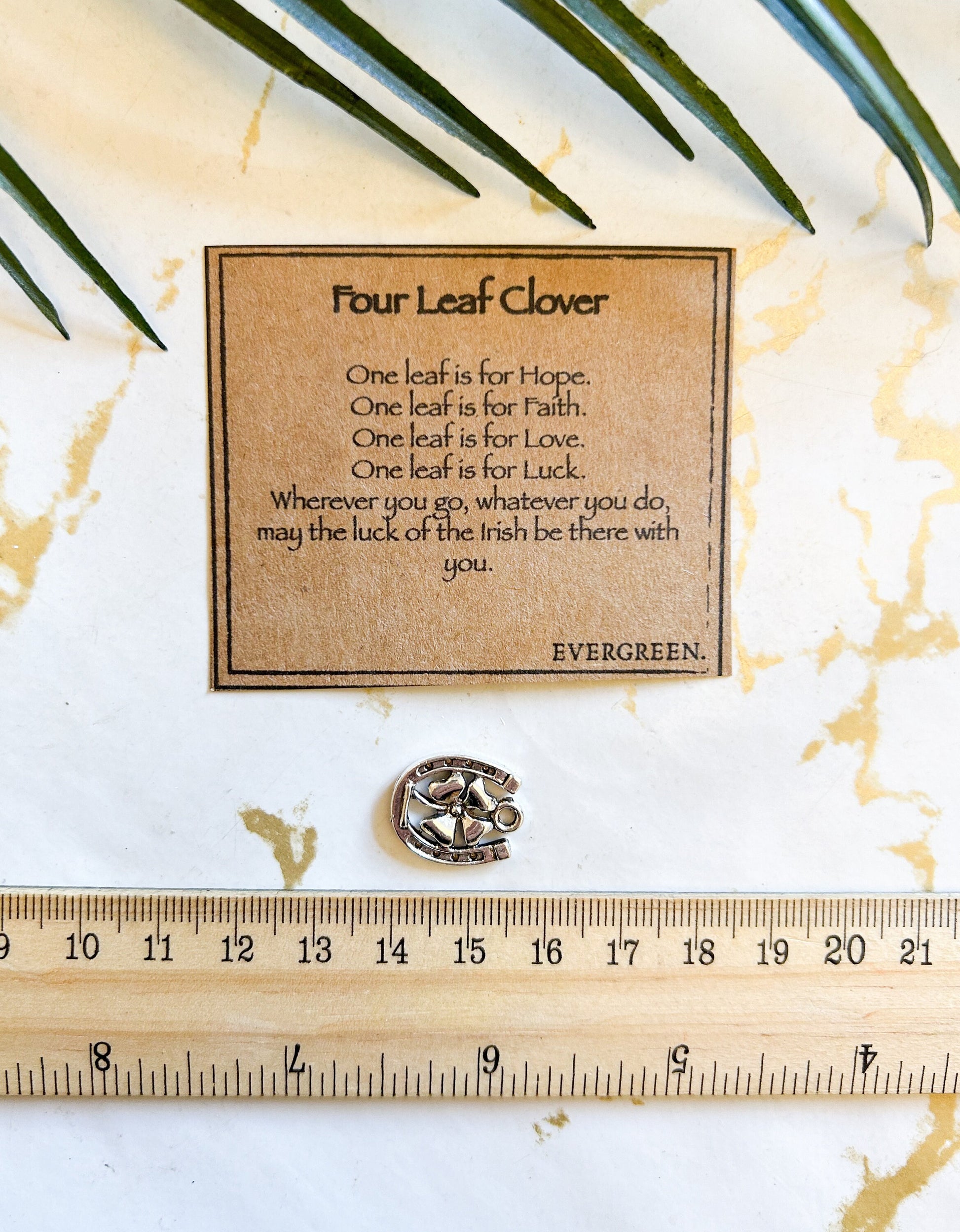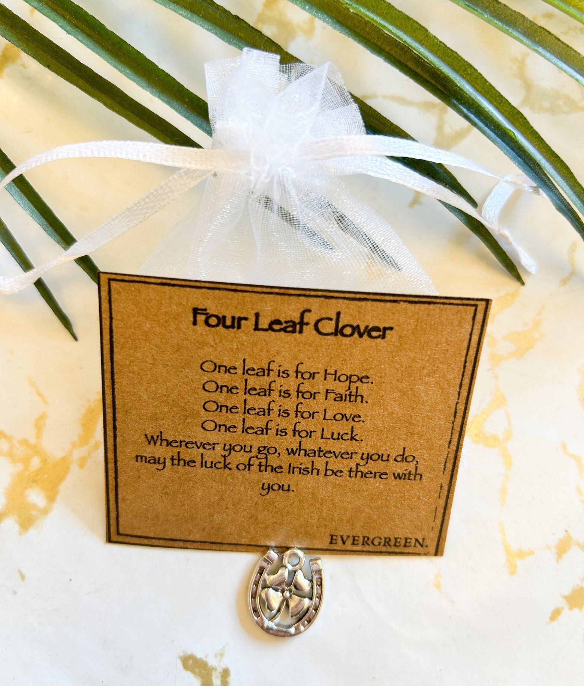 Lucky Horseshoe With Four Leaf Clover Pendant / Charm - Luck, Good Fortune & Success
