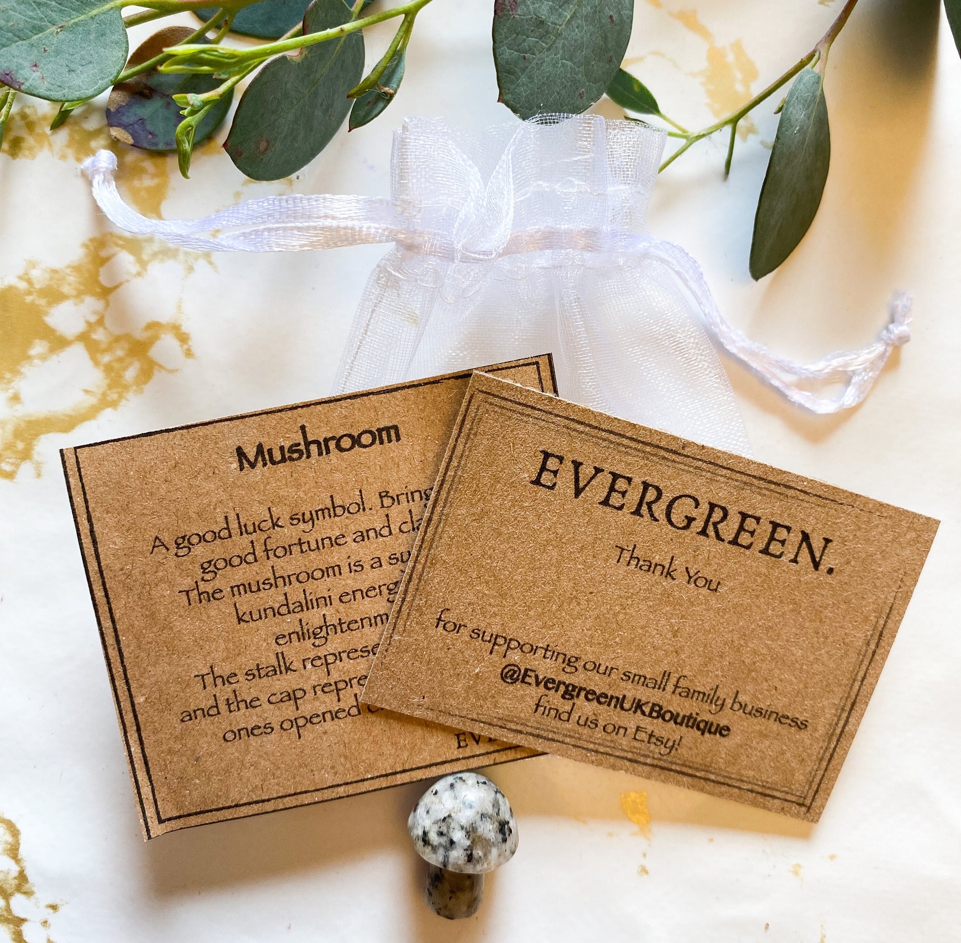 The mushroom is a good luck symbol. Brings forth good fortune and clarity. The mushroom is a symbol for kundalini energy and enlightenment. The stalk represents the spine and the cap represents represents ones opened crown chakra.