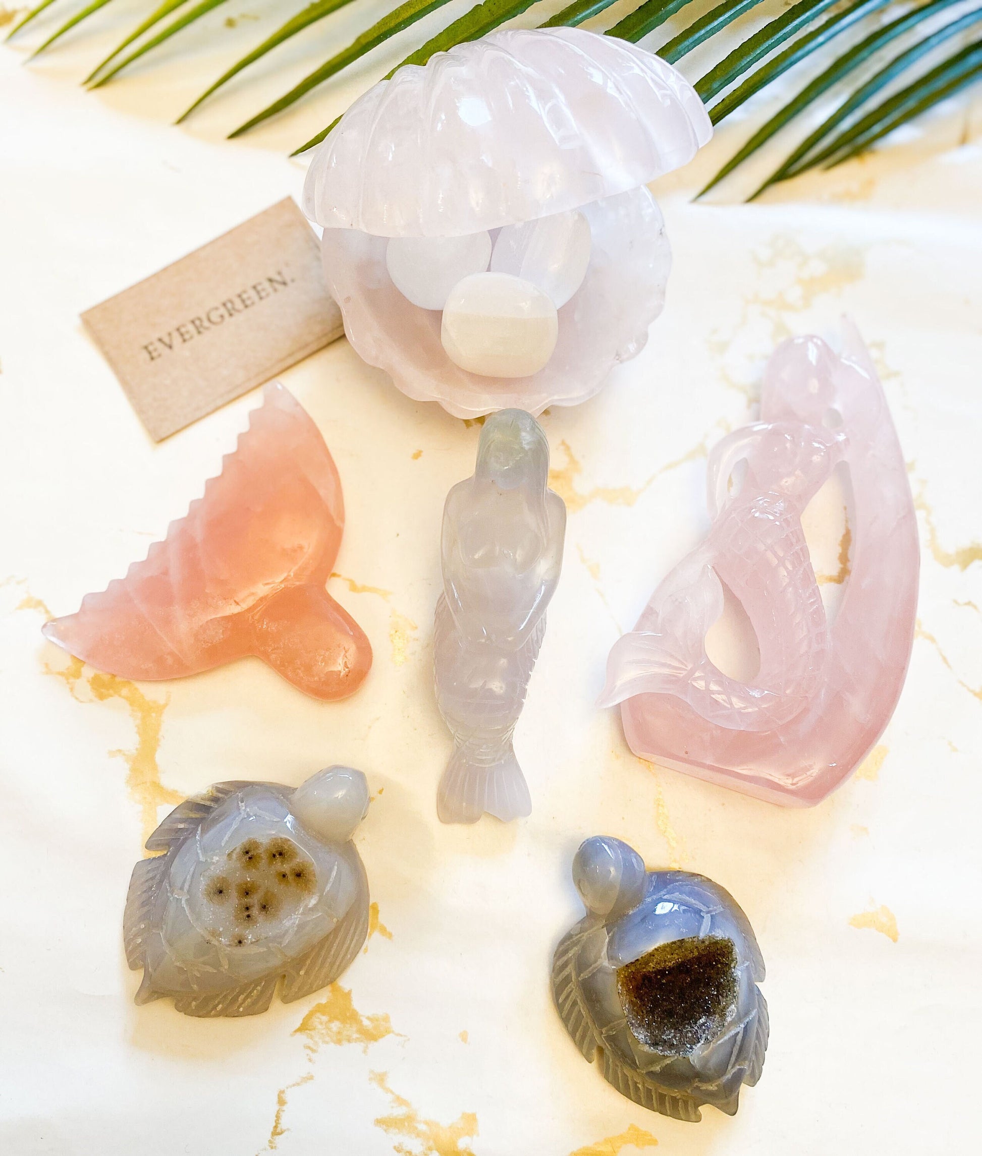 Ocean / Sea / Crystal Fish, Shell, Turtle & Mermaid Carvings - Quartz , Fluorite, Aventurine