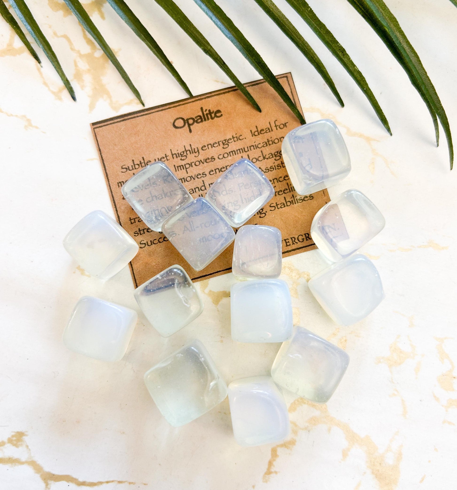 Opalite Crystal Tumbled Stone Cube - Communication, Meditation & Strength