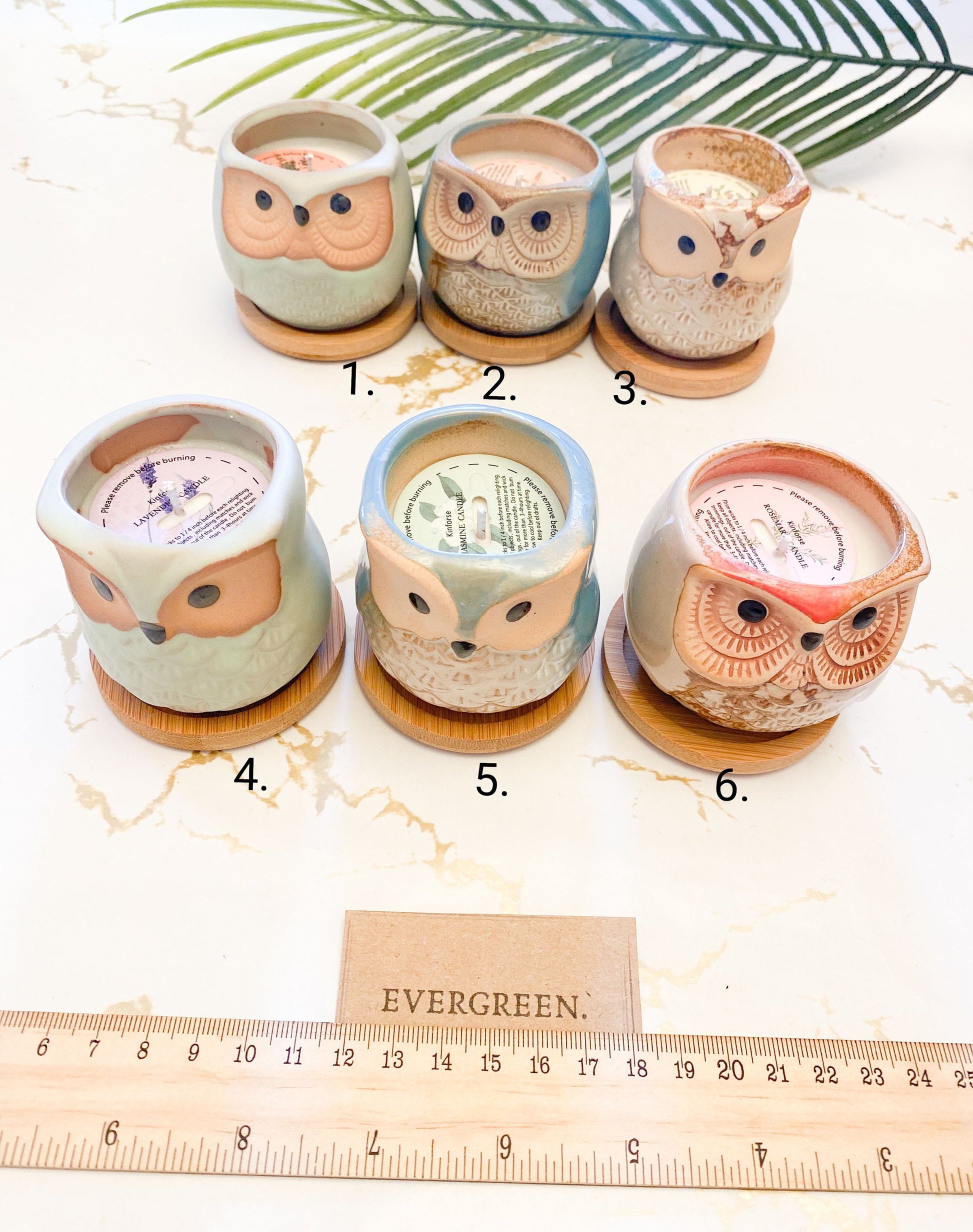 Owl Natural Fragrance Soy Wax Candle & Wooden Coaster - Wide Variety Available!