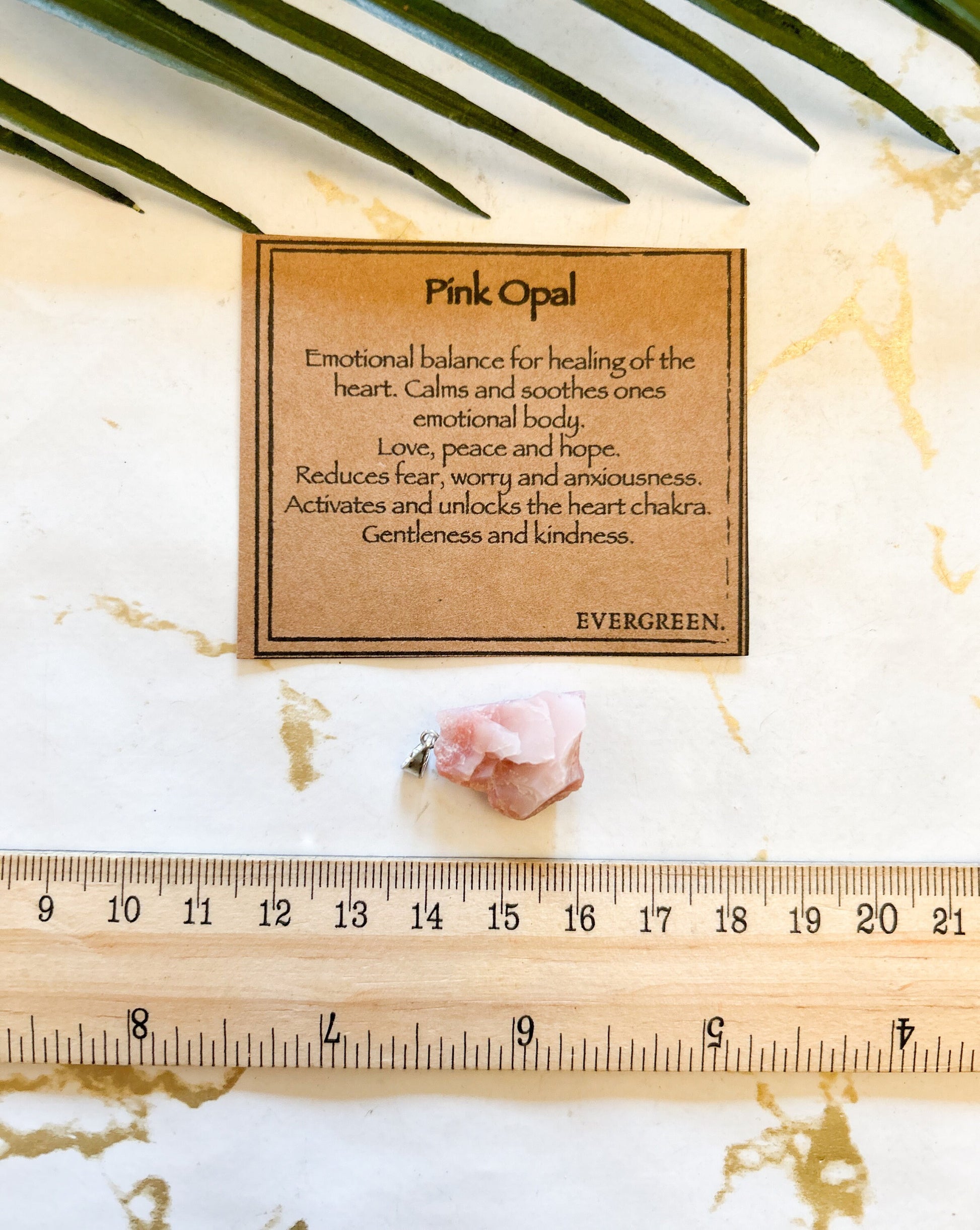 Raw / Rough Pink Opal Crystal Tumbled Stone Pendant - Love, Peace & Hope