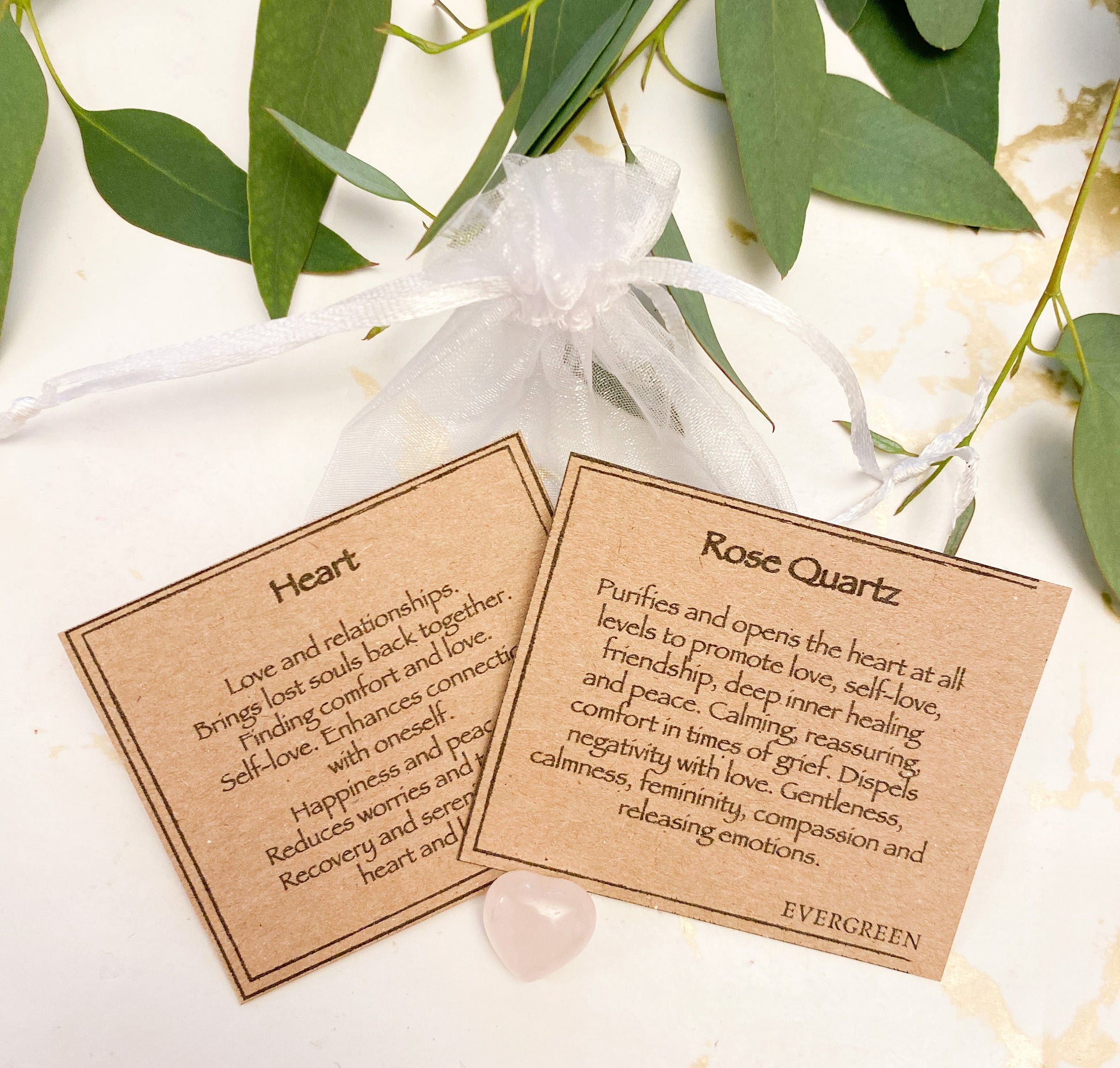 Rose Quartz purifies and opens the heart at all levels to promote love, self-love, friendship, deep inner healing and peace. Calming, reassuring, comfort in times of grief. Dispels negativity with love. Gentleness, calmness, femininity, compassion and releasing emotions.