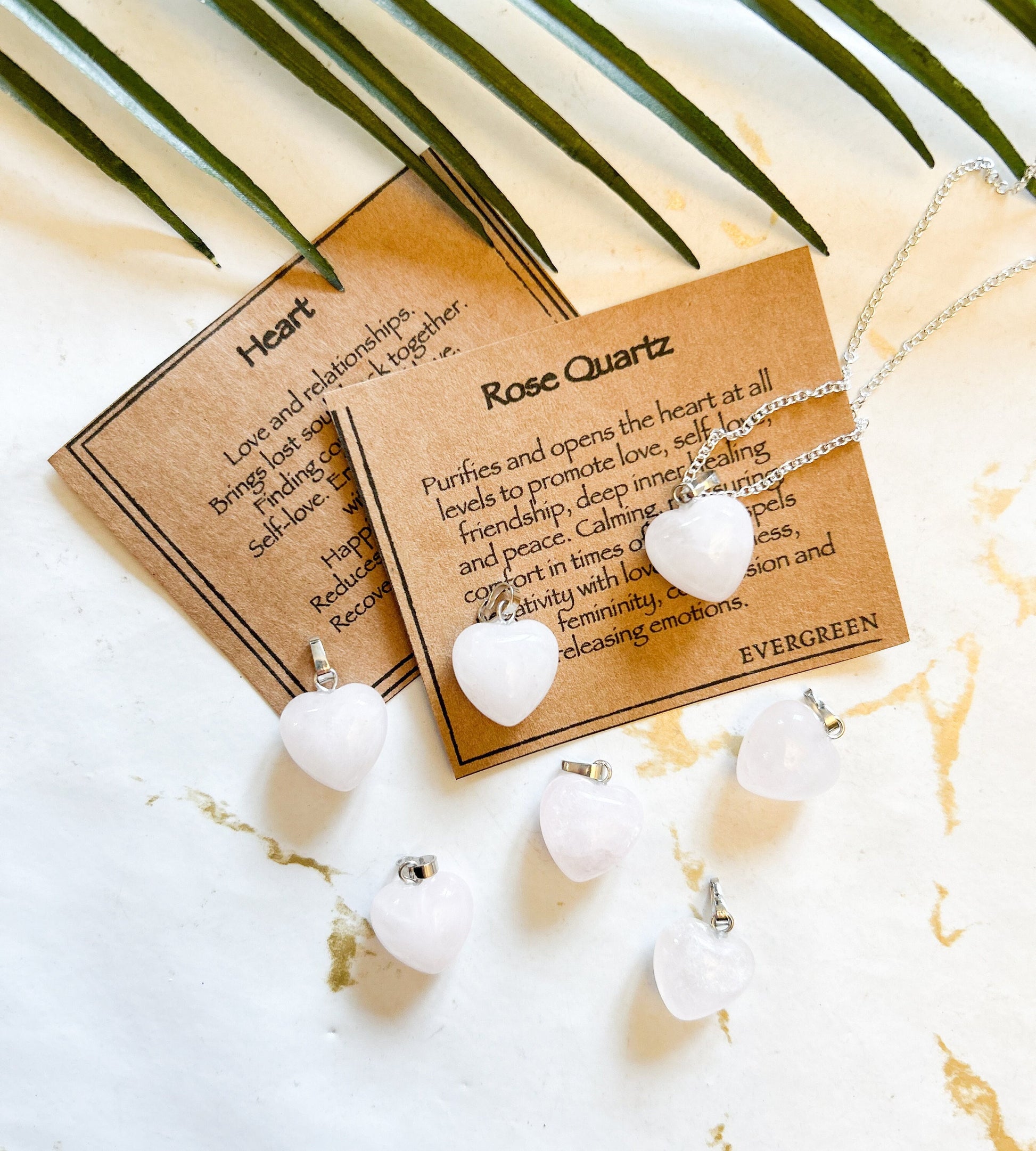 Rose Quartz Crystal Heart Pendant - Love, Compassion & Healing