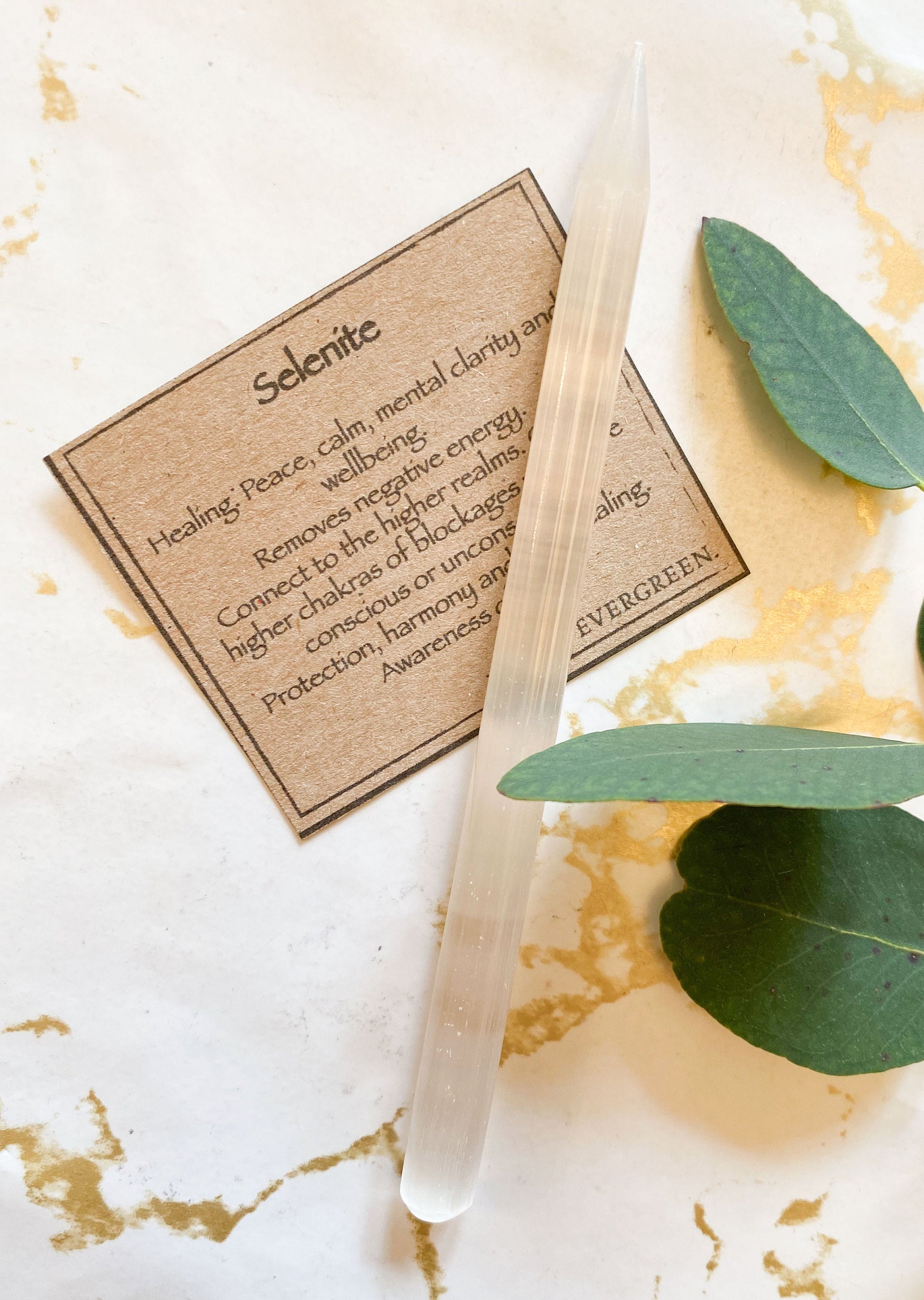 Selenite Crystal Pointed Pencil Wand - Peace, Clarity & Wellbeing