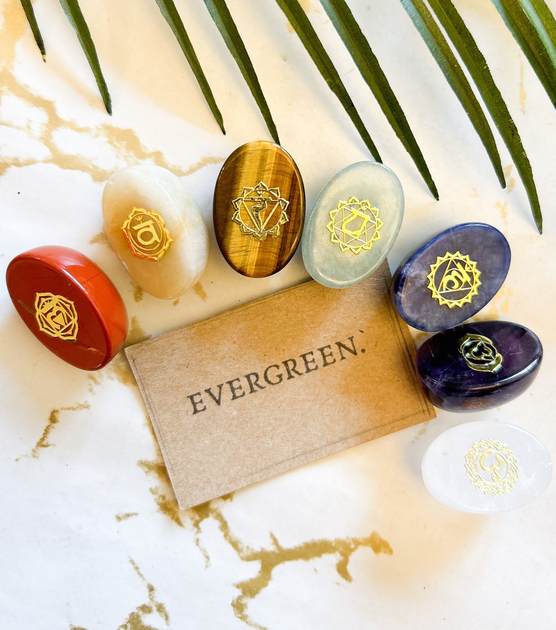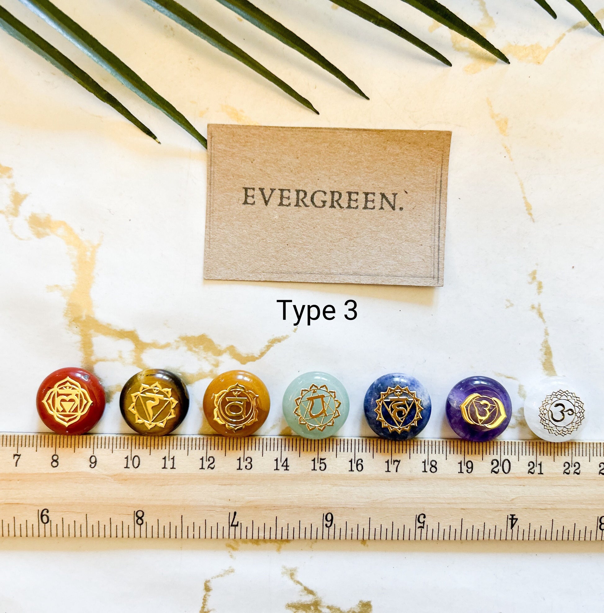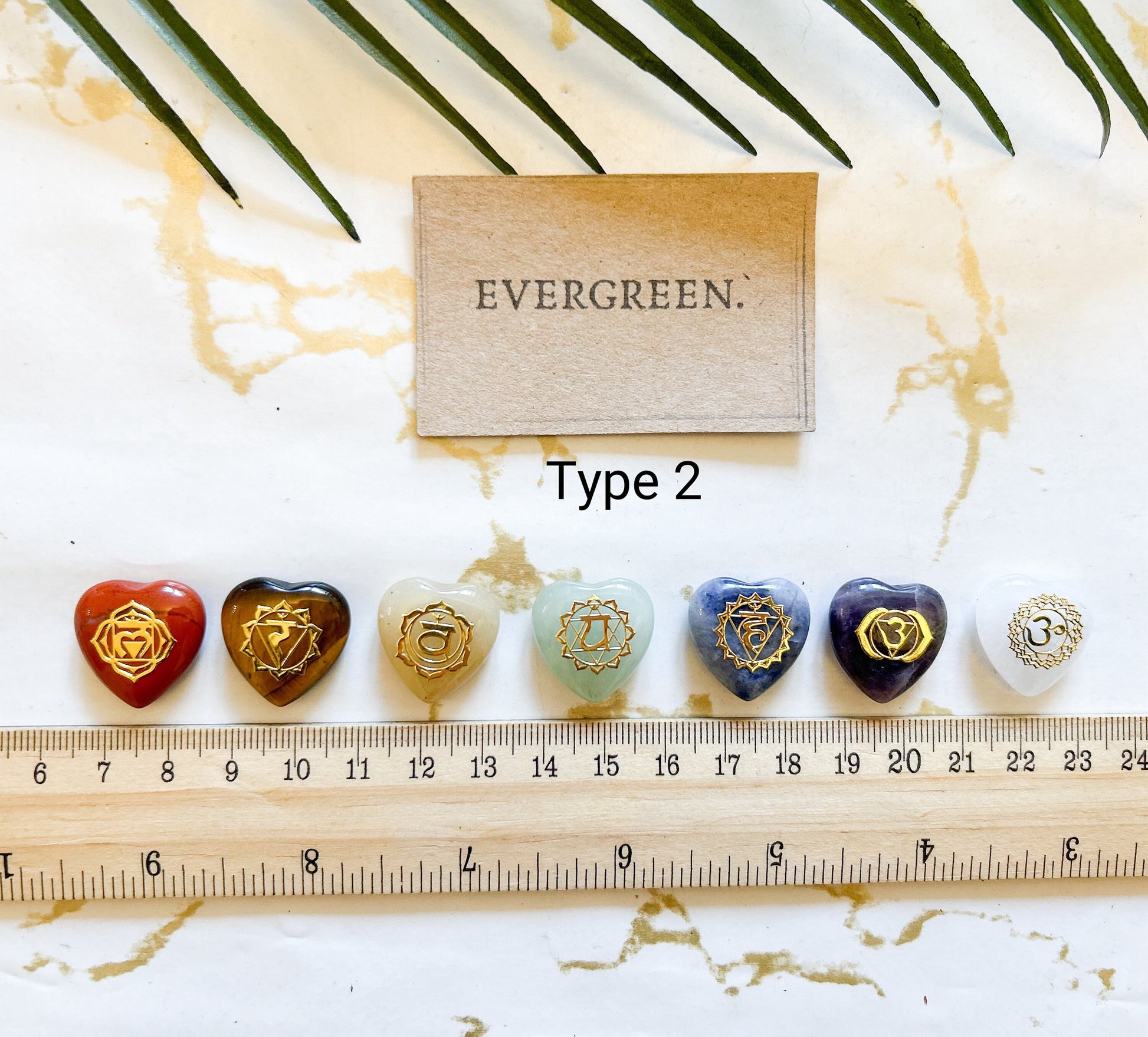 Set Of 7 Chakras Meditation Crystals - Cabochon / Heart / Coin