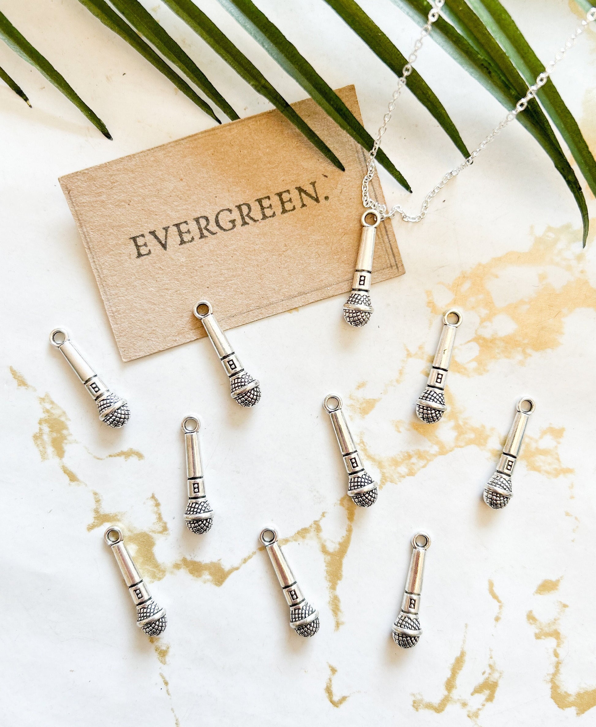 Silver Microphone Pendant / Charm - Music / Singing / Singing / Performer / Speech / Speaker / Talk / TED