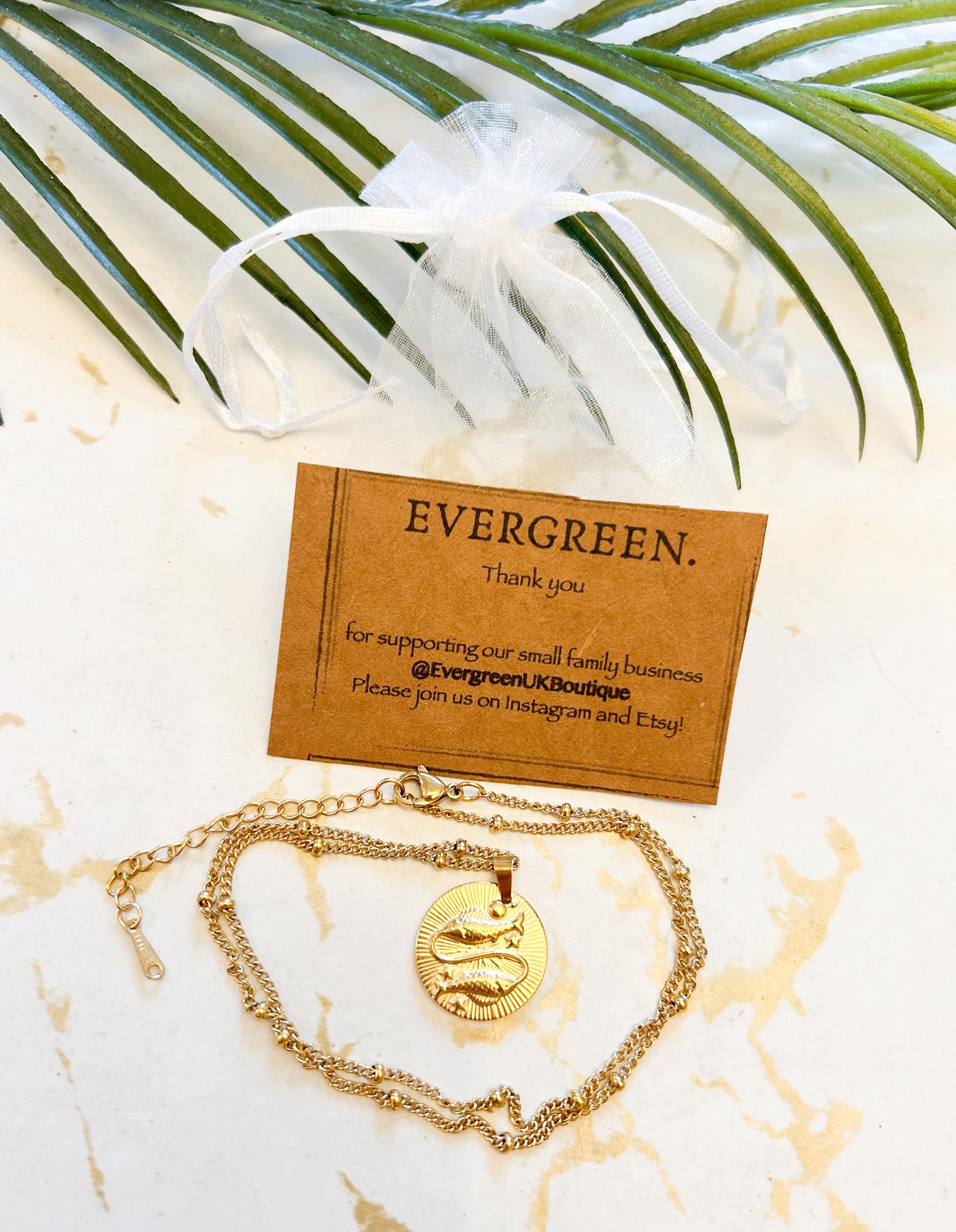 Stainless Steel Gold Coin Zodiac / Star Sign / Constellations Pendant Necklace