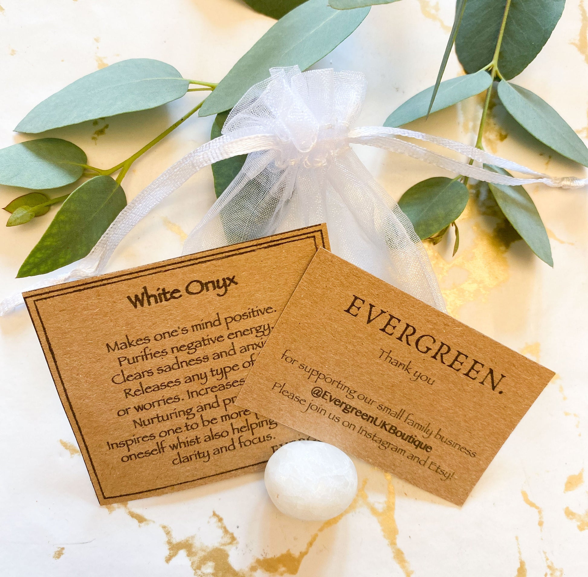 White Onyx makes one's mind positive. Purifies negative energy. Clears sadness and anxiety. Releases any type of fear or worries. Increases stamina. Nurturing and protection. Inspires one to be more patient with oneself whist also helping to find clarity and focus.